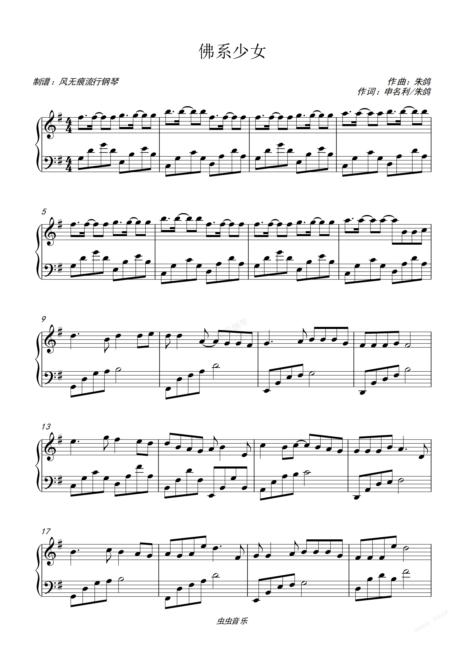 钢琴谱:佛系少女-冯提莫〖简易动听〗