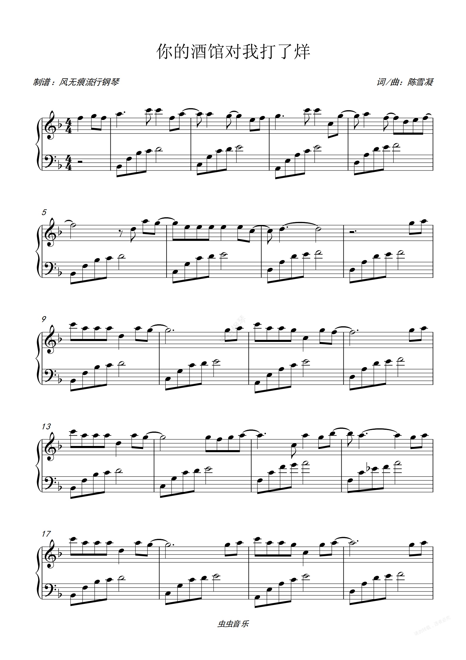 钢琴谱:你的酒馆对我打了烊-陈雪凝〖简易动听〗