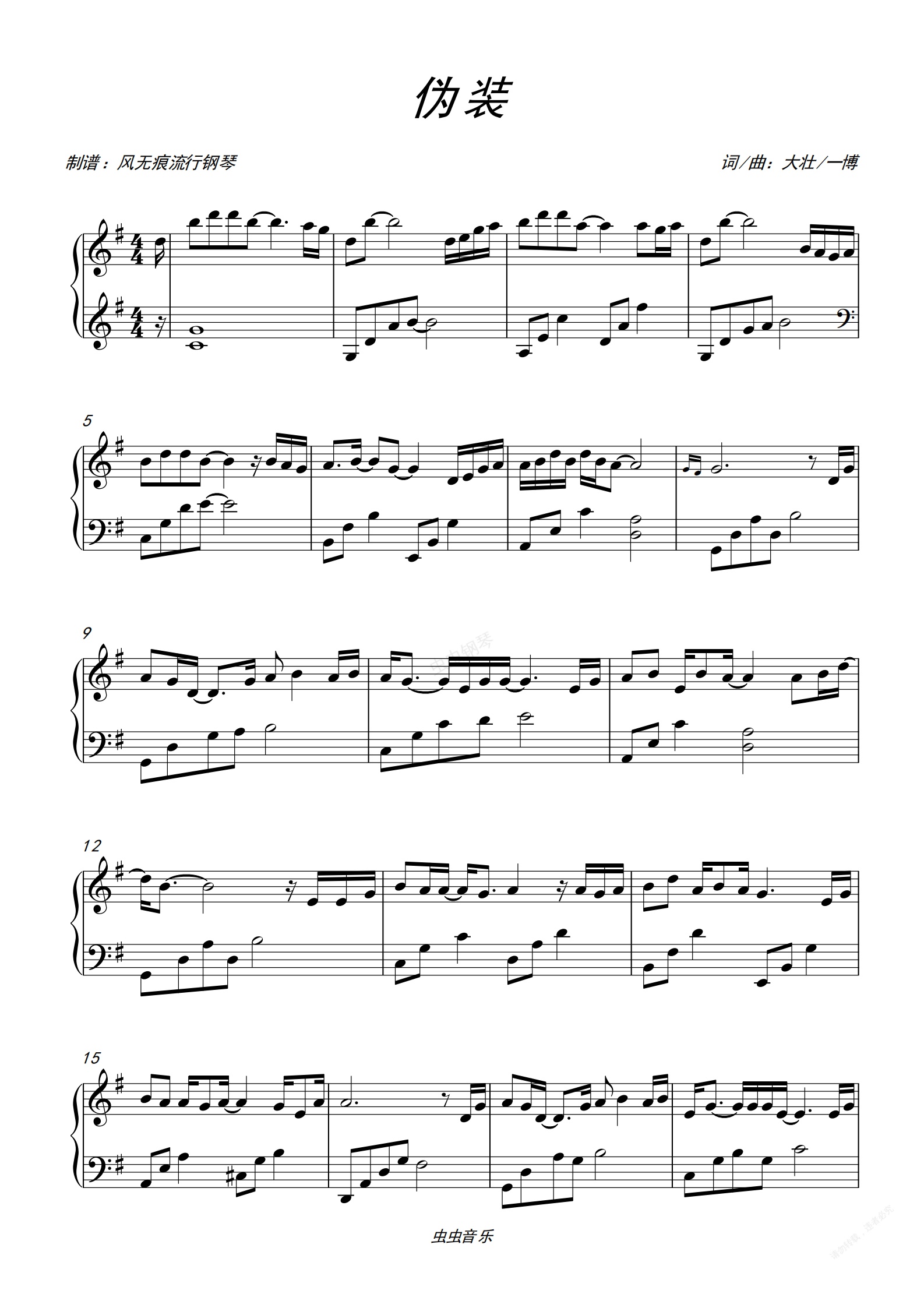 钢琴谱:伪装-大壮〖简易动听〗
