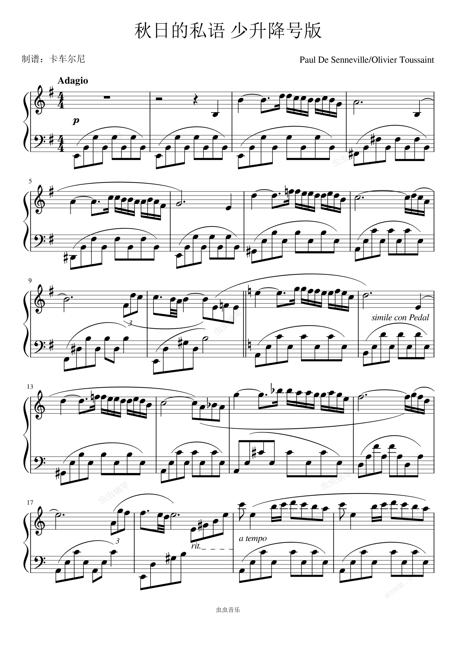 钢琴谱:秋日的私语 少升降号优化华彩演奏版