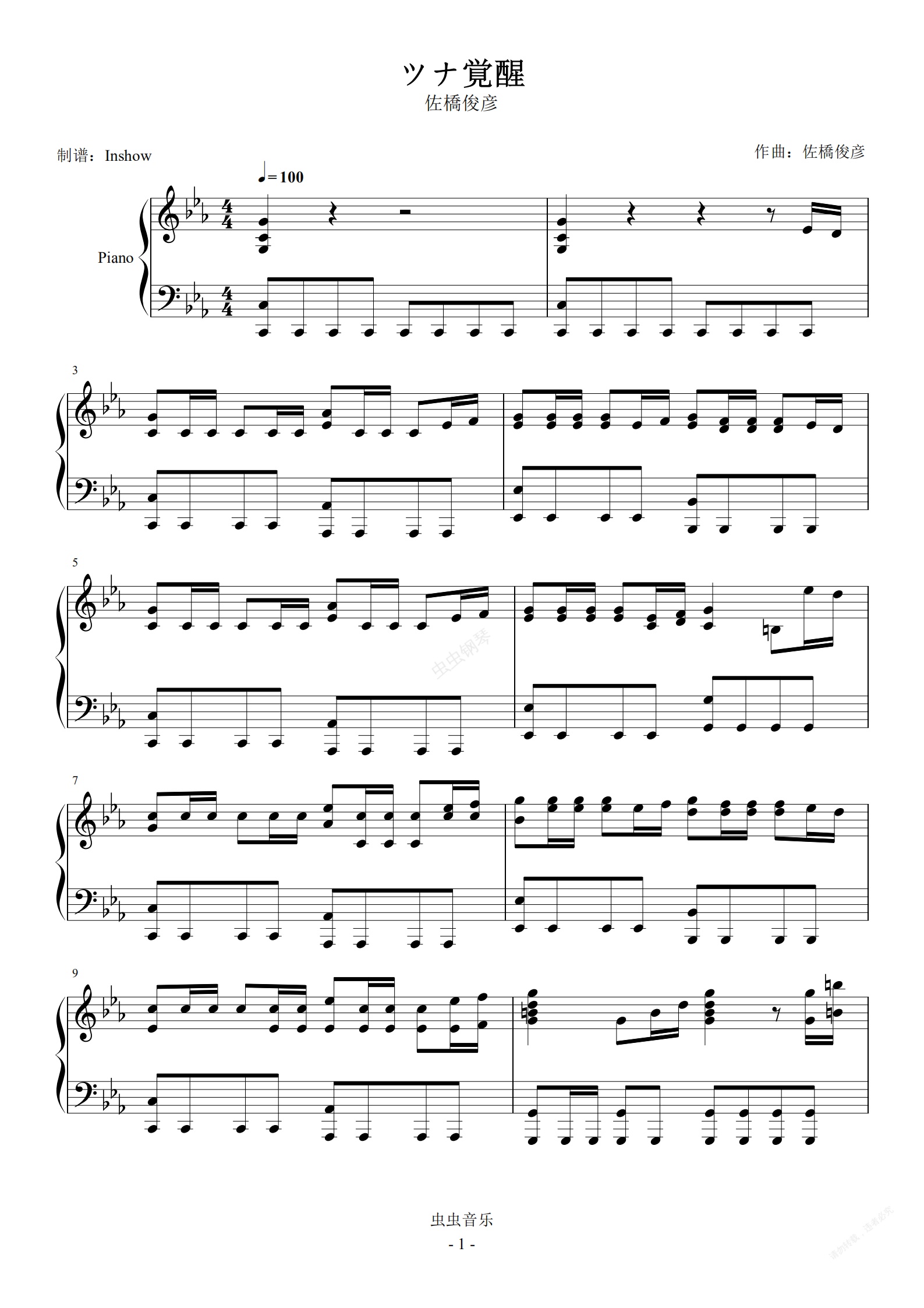 钢琴谱:ツナ覚醒 (阿纲觉醒) 【独奏】 {电视动画《家庭教师》插曲} #新闻 #BGM #抖音
