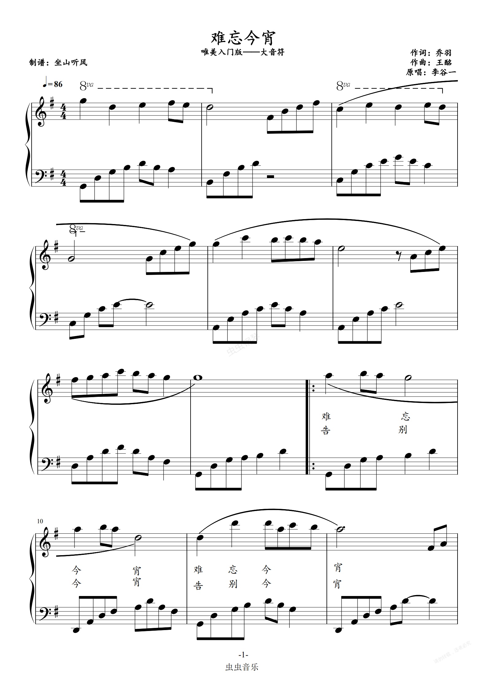 钢琴谱:难忘今宵——唯美入门版(大音符)
