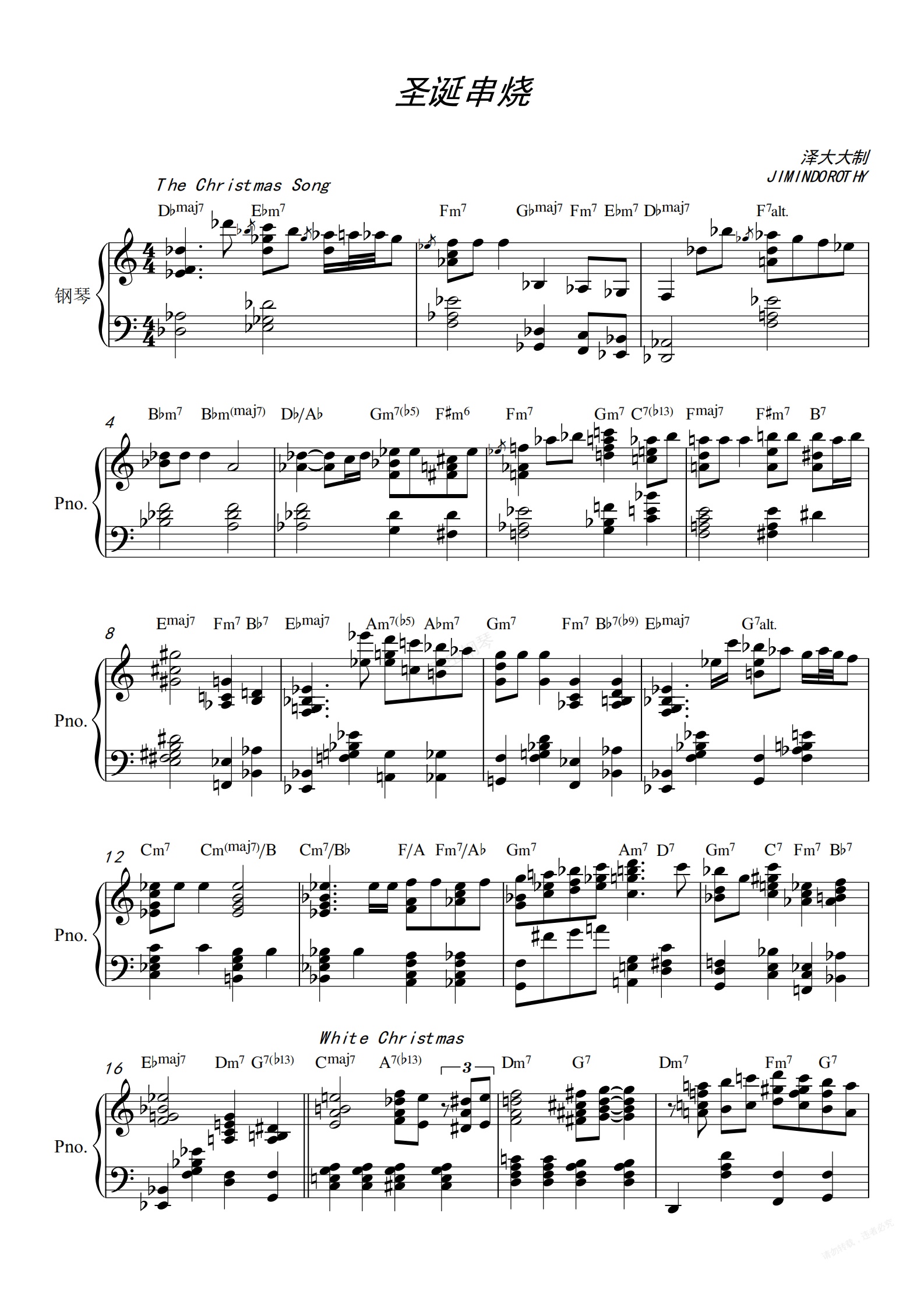 钢琴谱:圣诞串烧【爵士钢琴独奏】