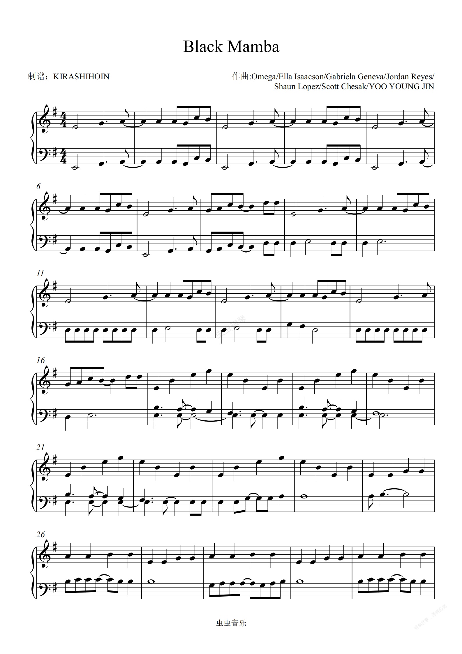 钢琴谱:Black Mamba
