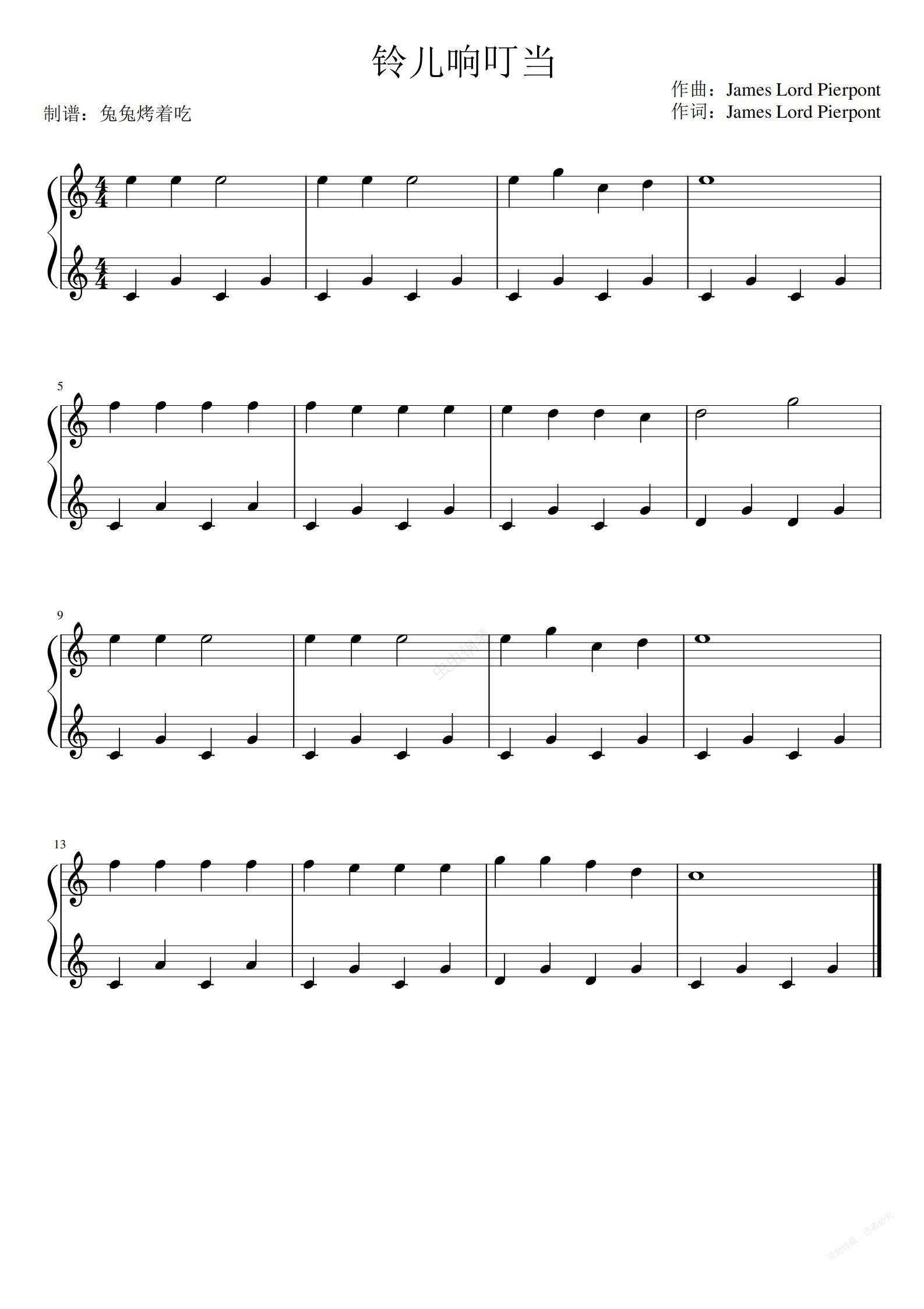 钢琴谱:铃儿响叮当 儿童钢琴 启蒙 弹唱简易初级