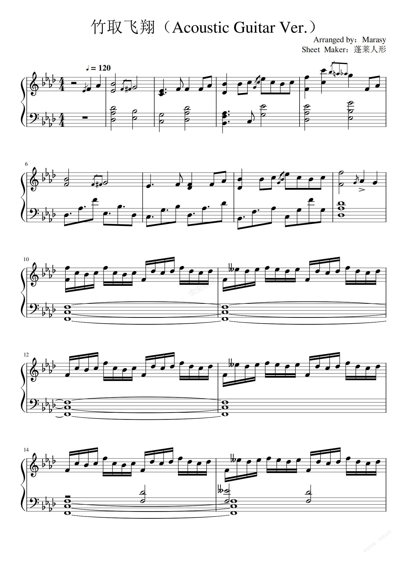钢琴谱:竹取飞翔(Acoustic Guitar Ver.)