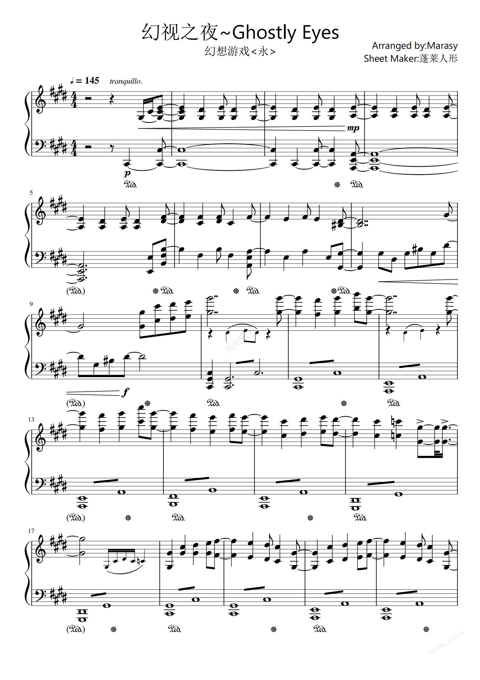 钢琴谱:【东方永夜抄】【触手猴】幻视之夜~Ghostly Eyes