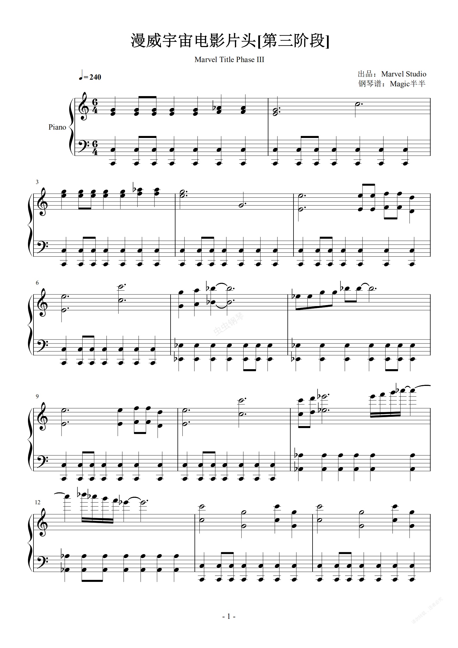 钢琴谱:漫威宇宙电影片头[第三阶段]