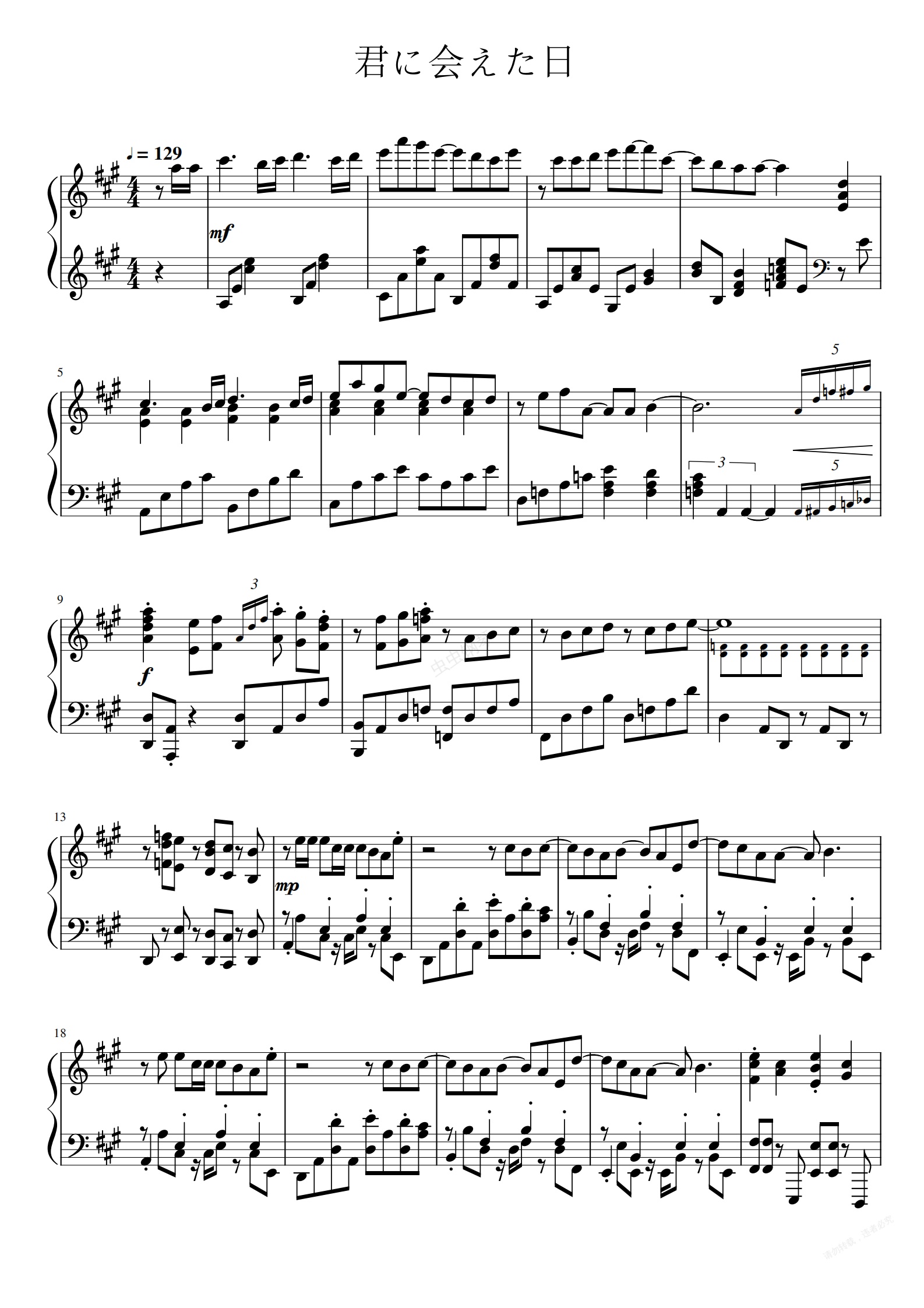 钢琴谱:安达与岛村OP《君に会えた日》
