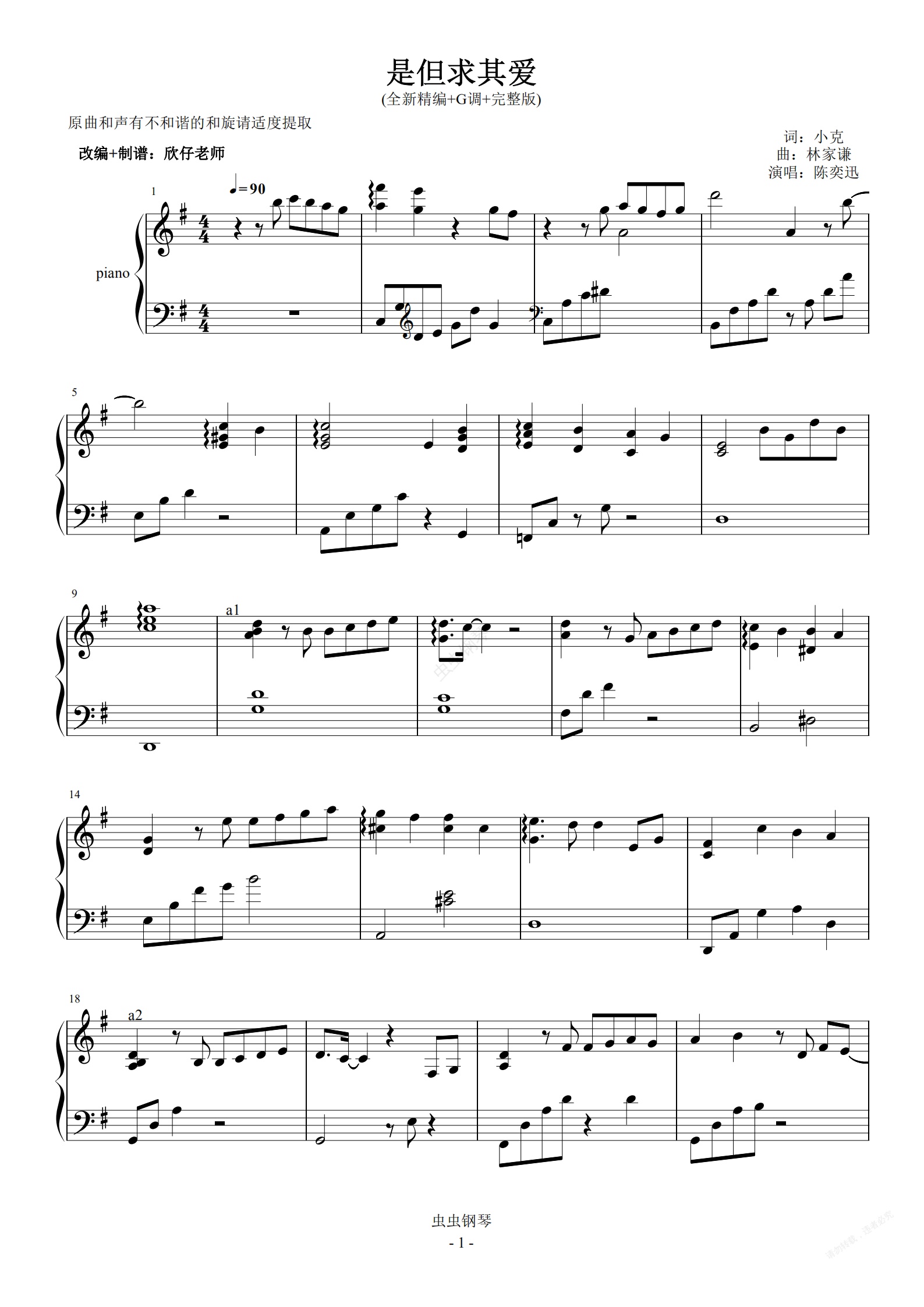 钢琴谱:陈奕迅-《是但求其爱》-G调(全新精编+完整版)