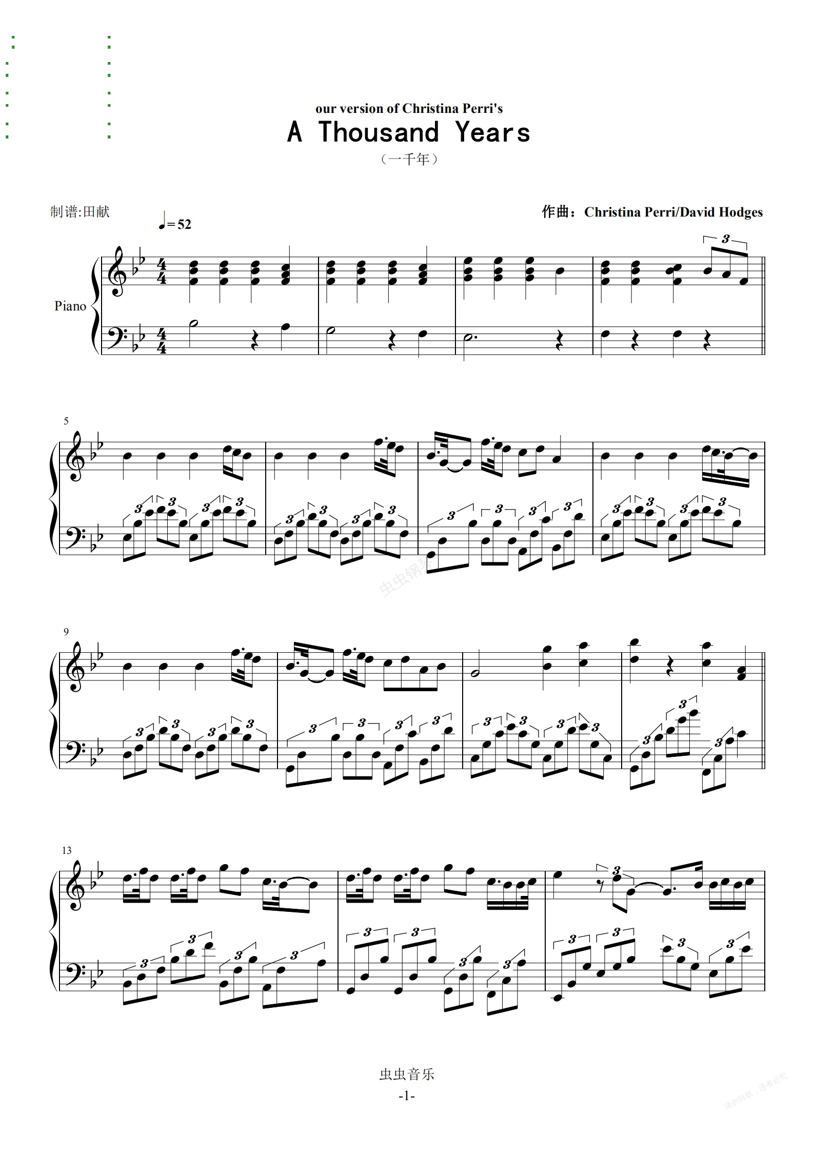钢琴谱:A Thousand Years(暮光之城4)插曲