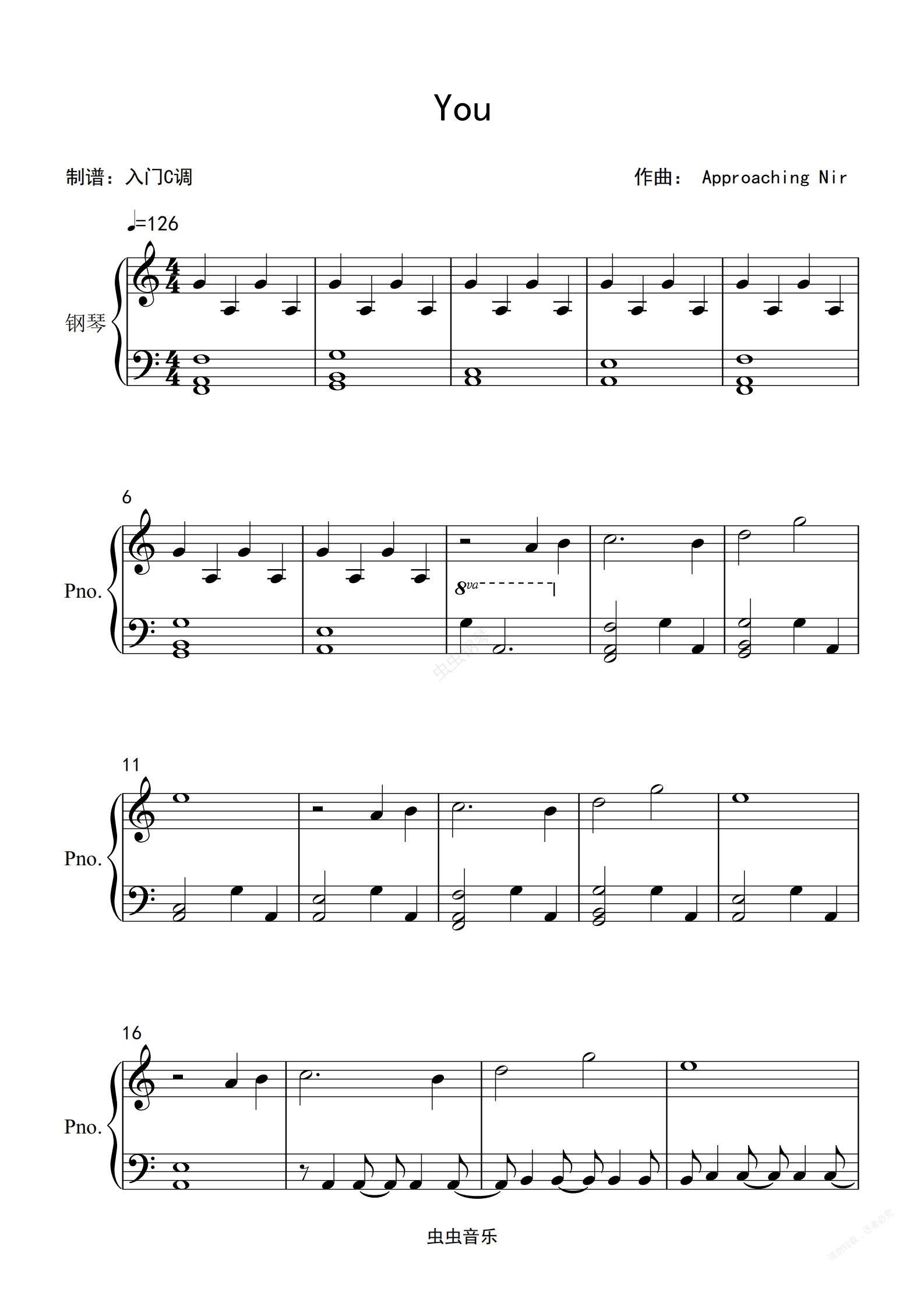 钢琴谱:Approaching Nirvana《you》C调简单版