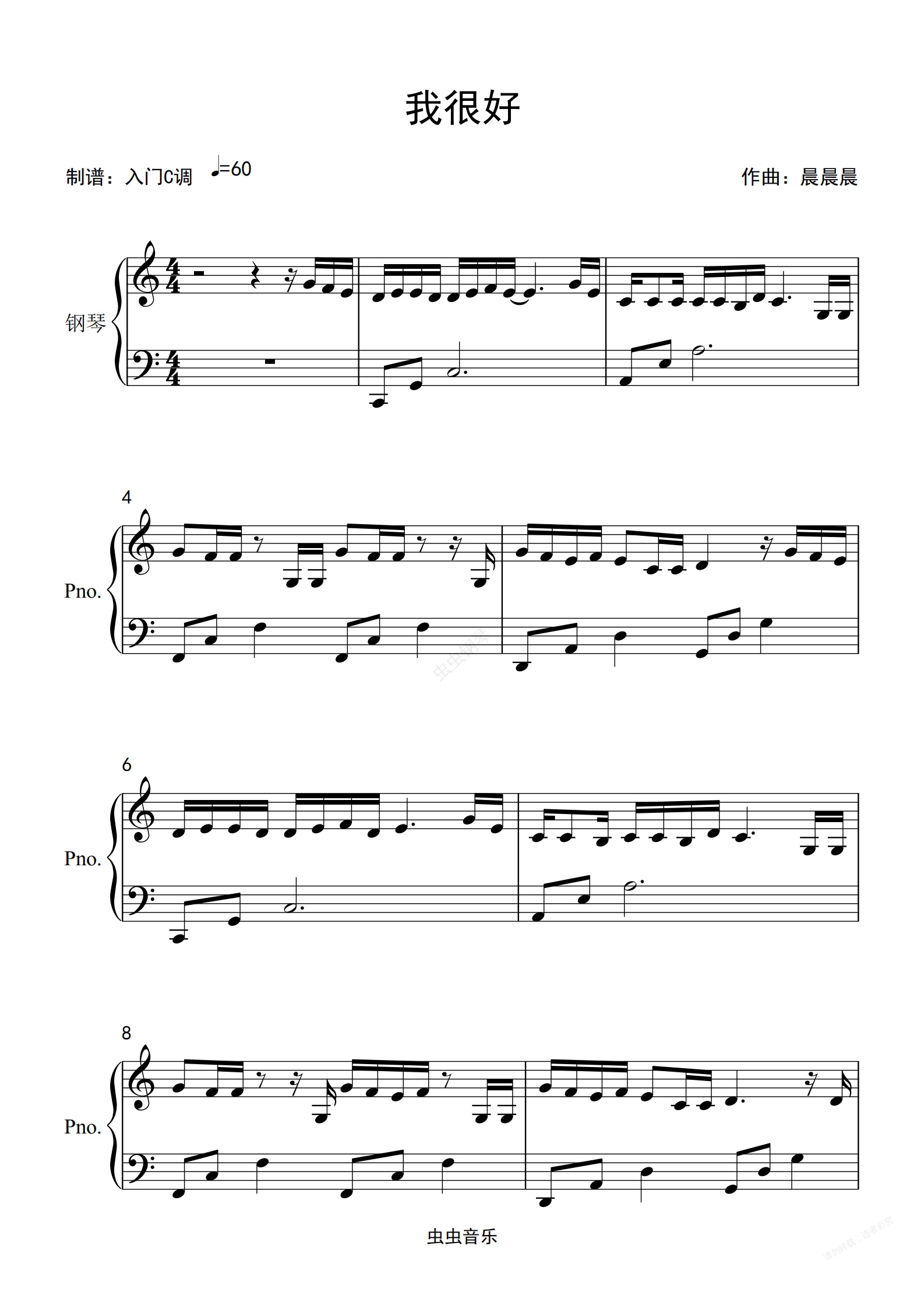 钢琴谱:刘大壮《我很好》C调简单版