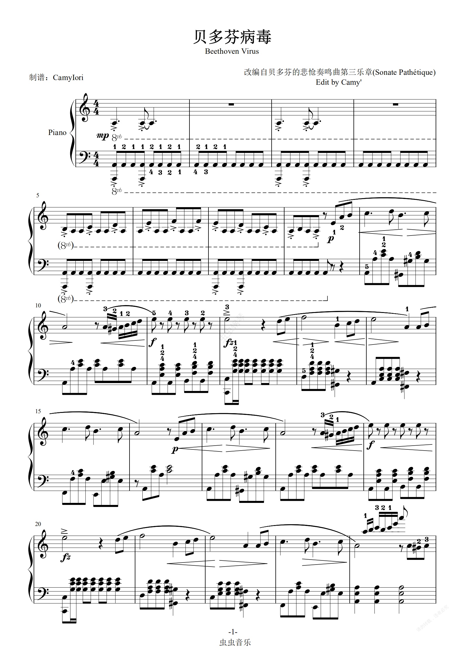 钢琴谱:贝多芬病毒-带指法 (Beethoven Virus)