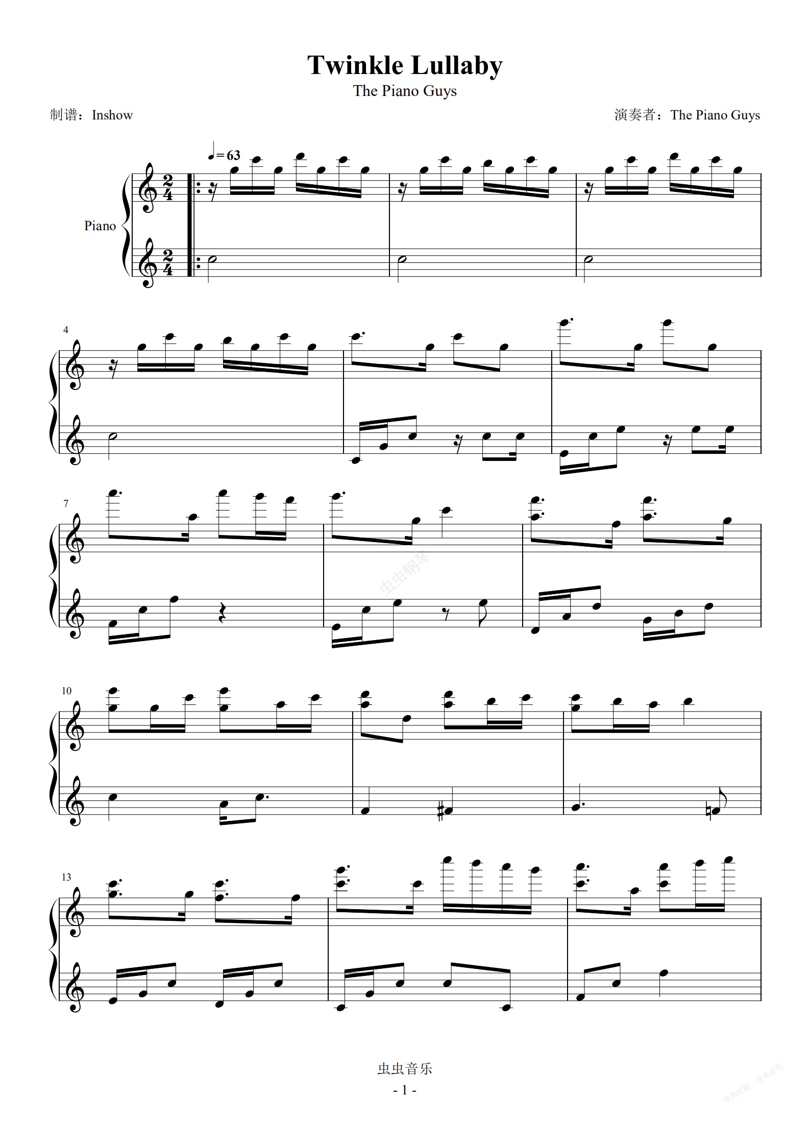 钢琴谱:Twinkle Lullaby【独奏】- The Piano Guys -(#安静 #BGM)