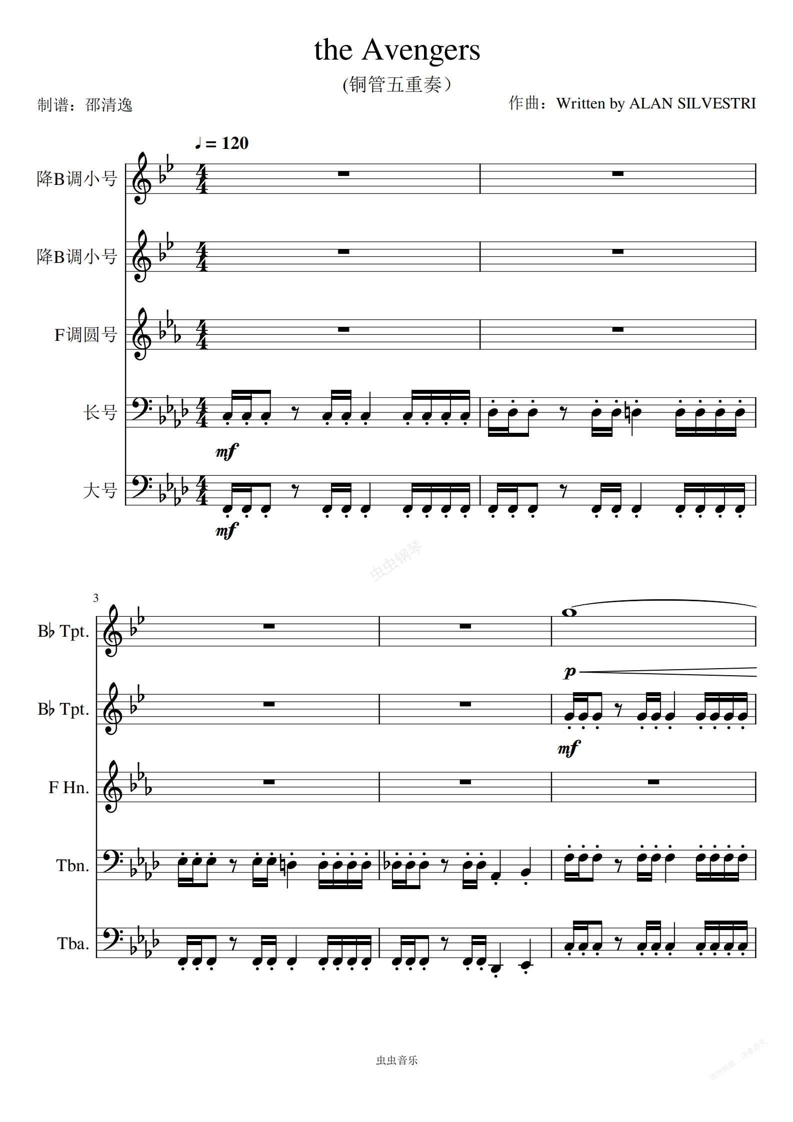 钢琴谱:复仇者联盟(铜管五重奏)——Movie Theme