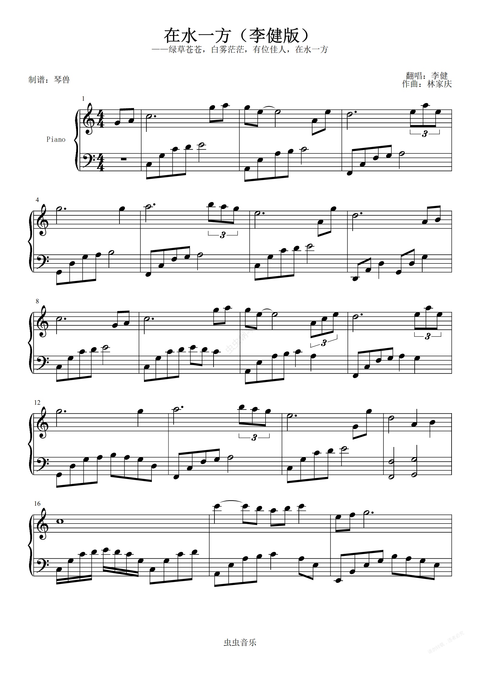钢琴谱:在水一方-李健版(琴兽简单版)