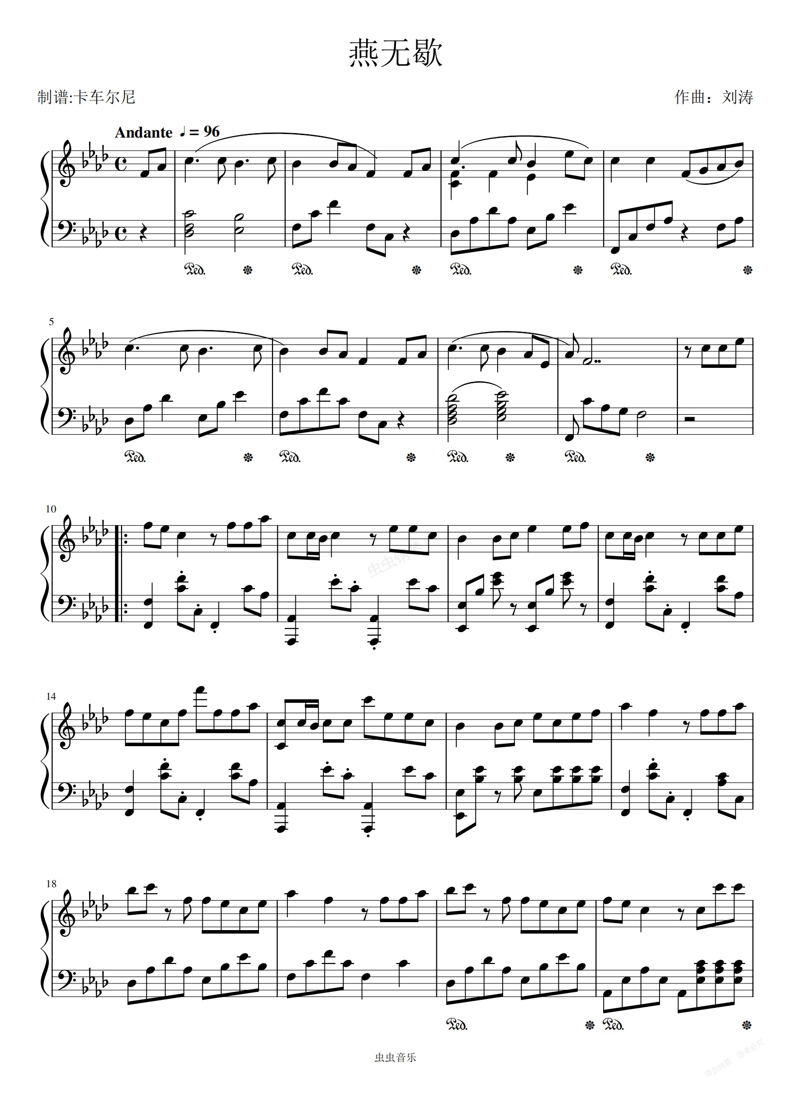钢琴谱:燕无歇 简单演奏版