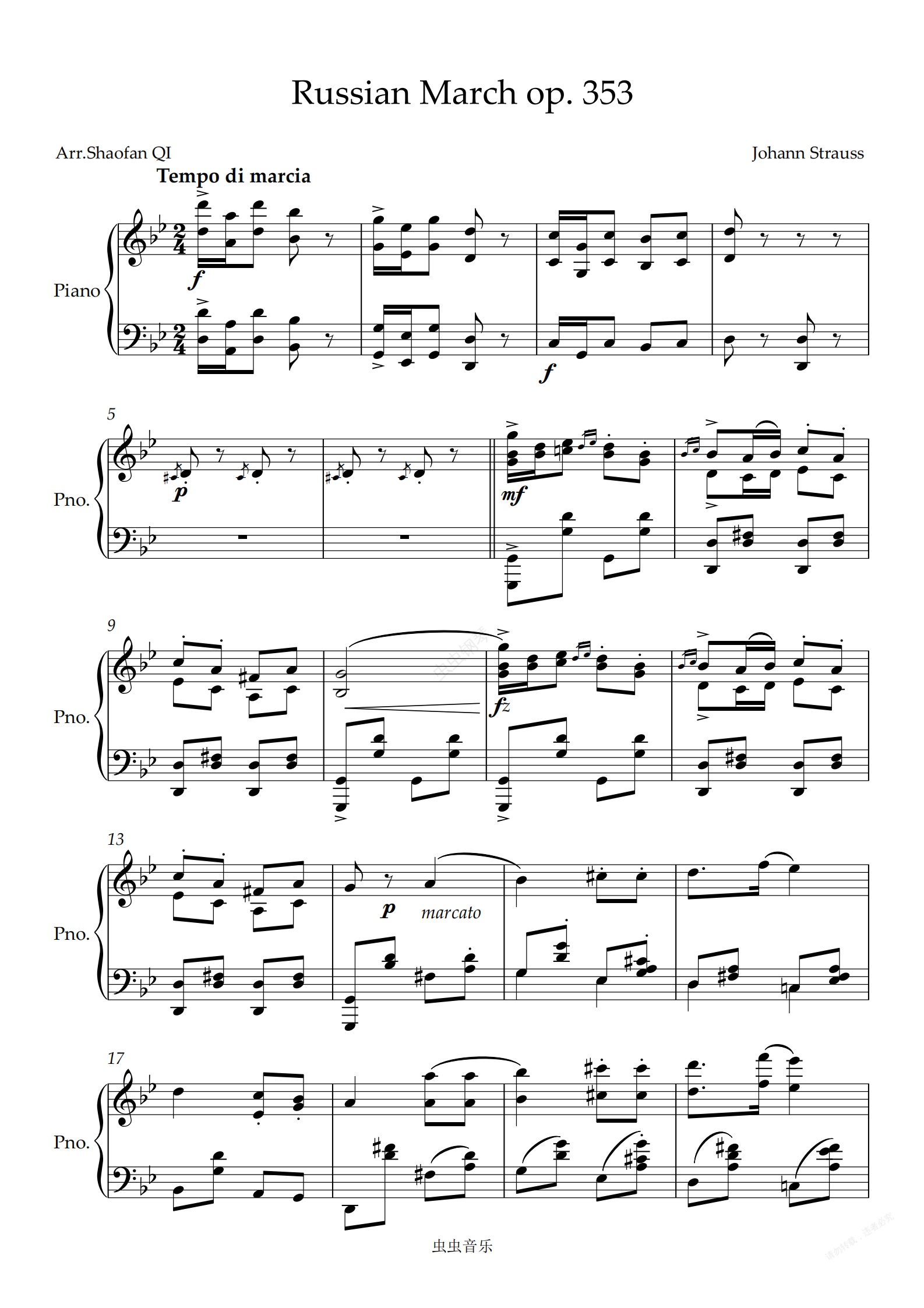 钢琴谱:俄罗斯进行曲(钢琴版)施特劳斯