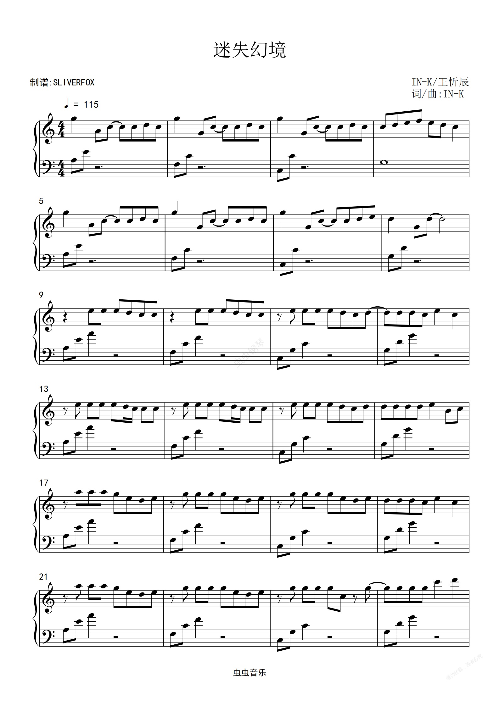 钢琴谱:《迷失幻境》IN-K/王忻辰-高度还原(C调)
