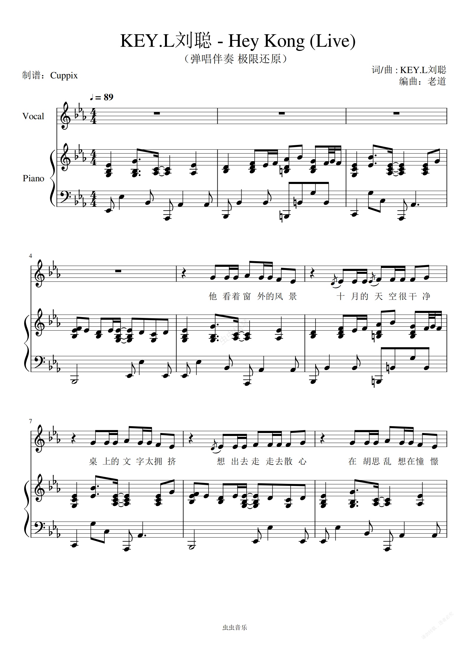 虽然大部分时间在循环,但还是有点变化的,有两处和声进行变了,如果不仔细看谱会唱着对不上的。另外曲子里有两处和官方给的歌词对不上,暂时填充了问号作为代替。