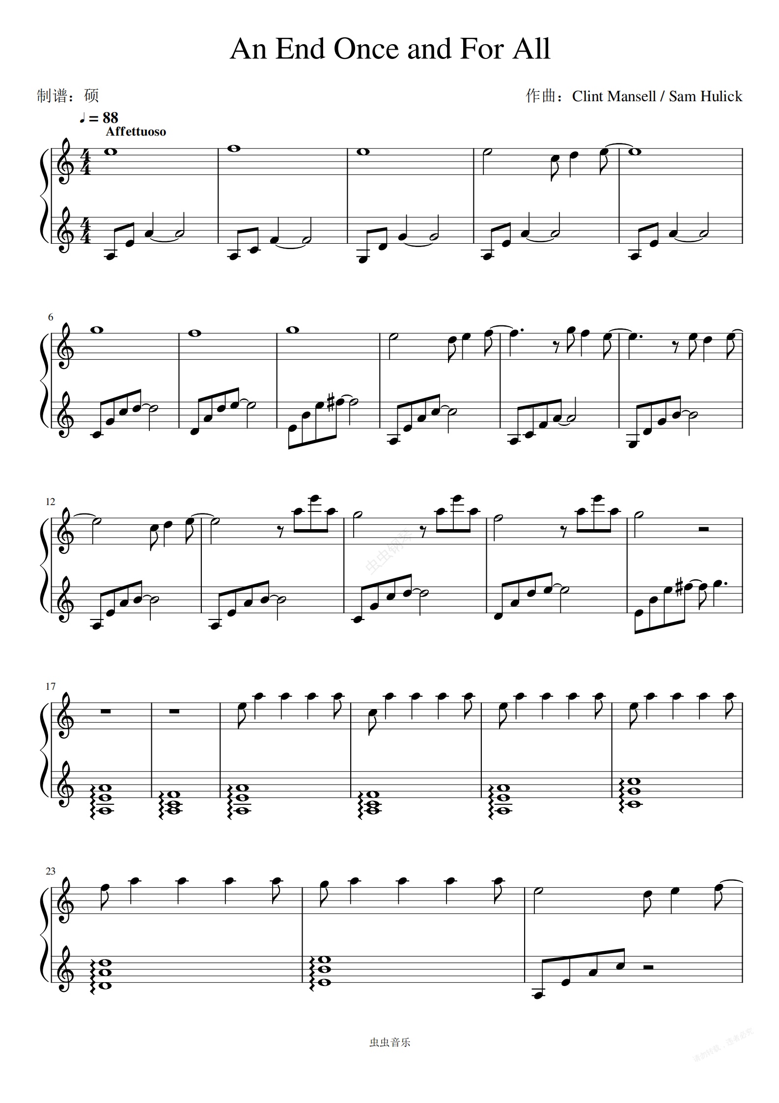钢琴谱:An End Once and For All