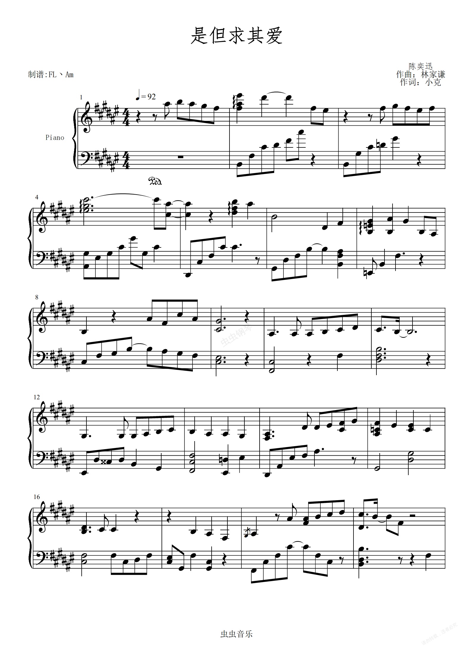 钢琴谱:是但求其爱