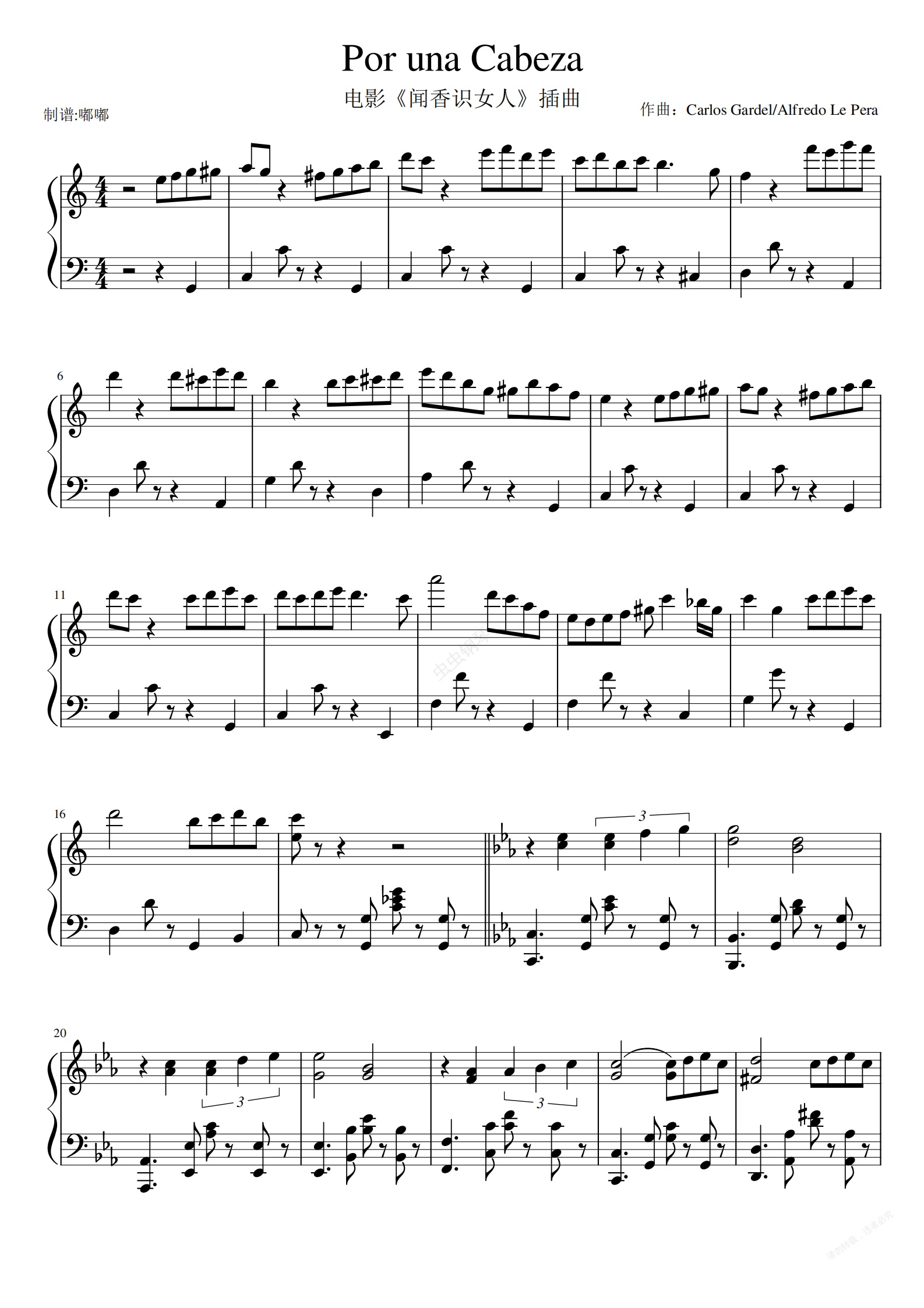 钢琴谱:Por una Cabeza(一步之遥)C调——电影《闻香识女人》插曲