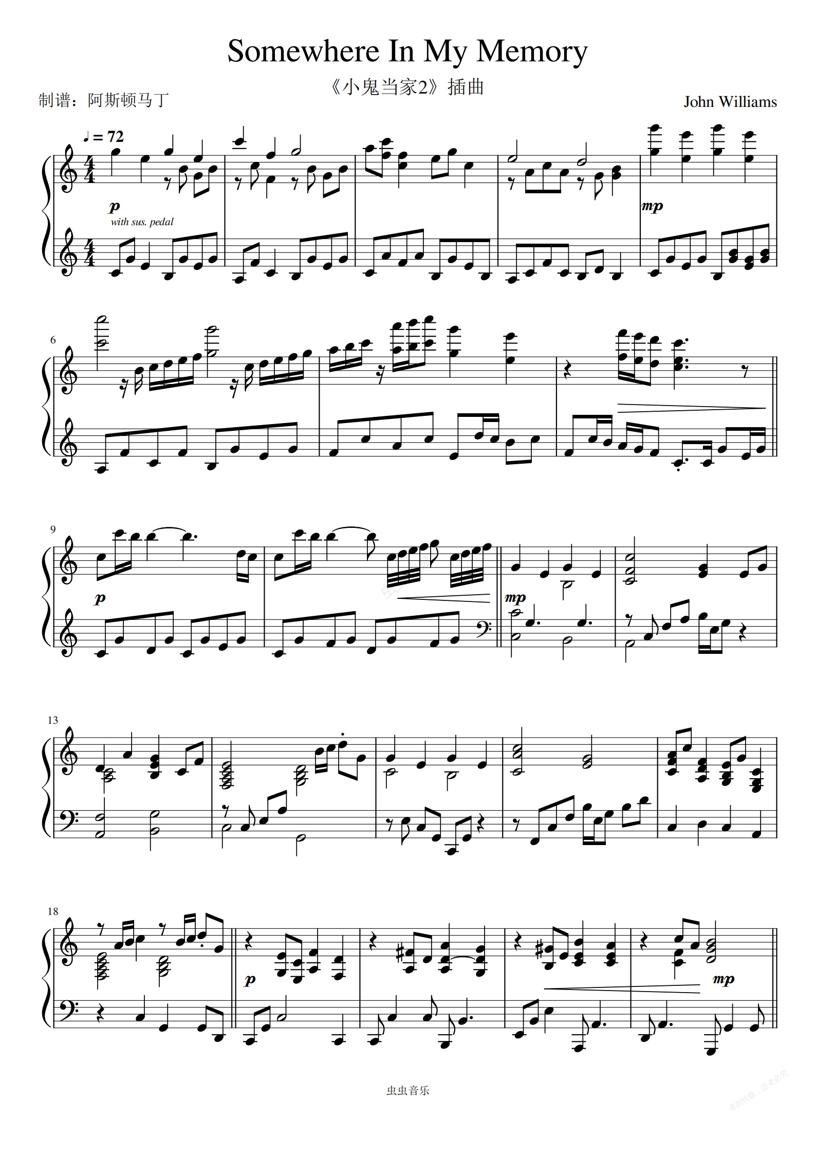 钢琴谱:Somewhere In My Memory《小鬼当家2》插曲C调