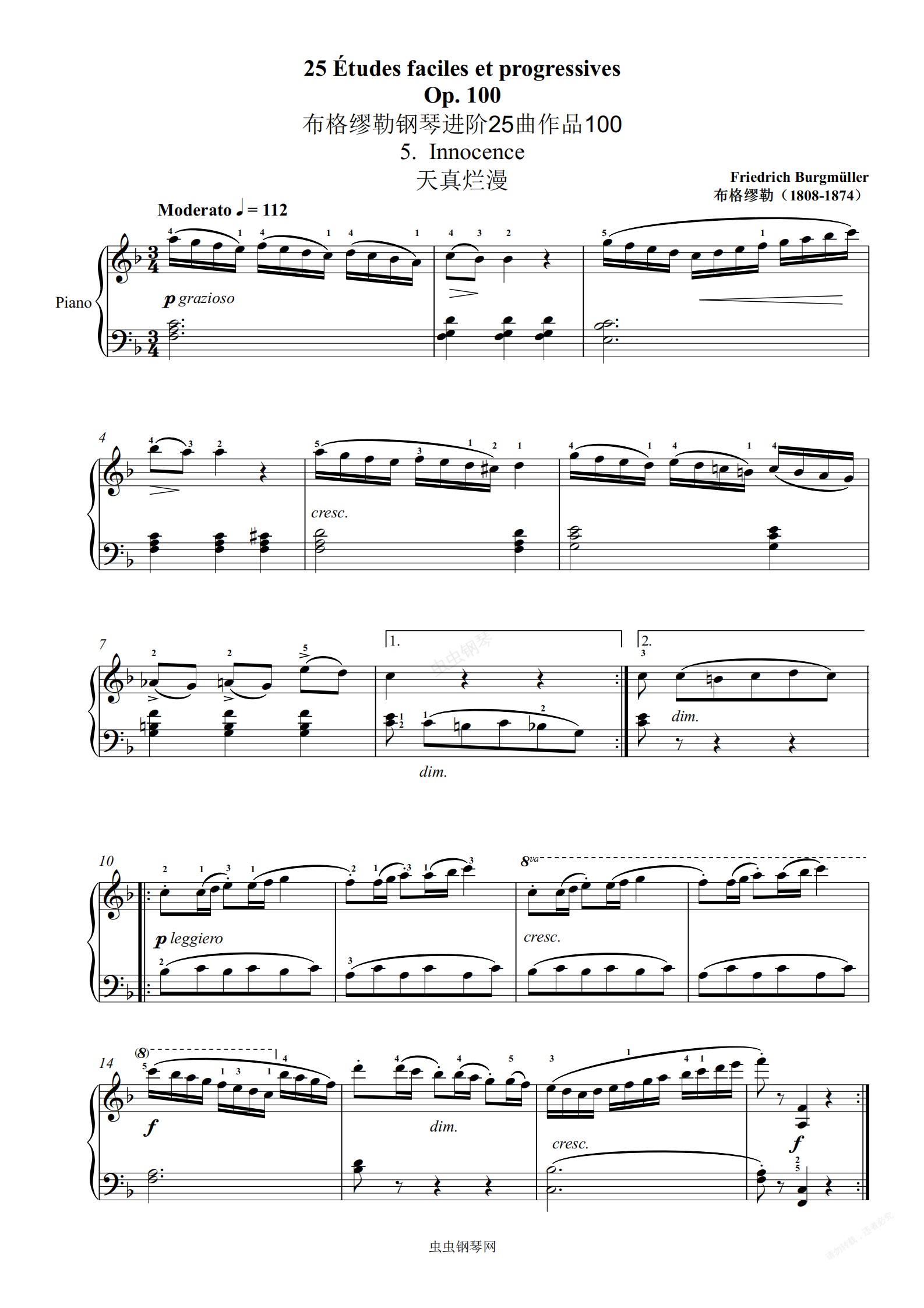 钢琴谱:【初学者】布格缪勒25首钢琴进阶练习曲 Op. 100 第五首 天真烂漫
