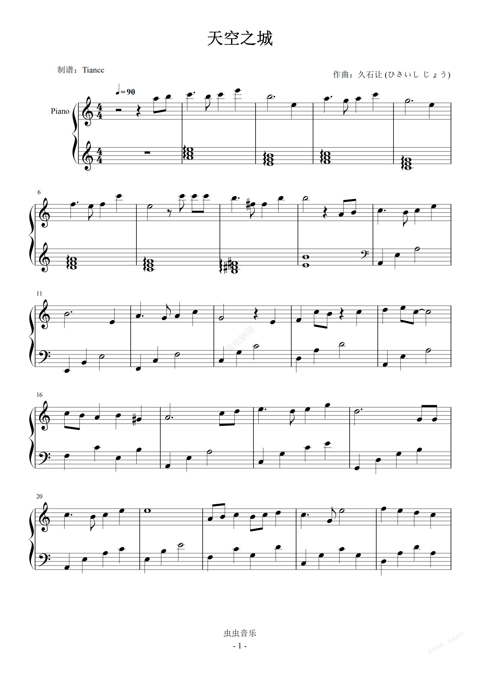 钢琴谱:《天空之城》拜厄难度,好听好弹的经典
