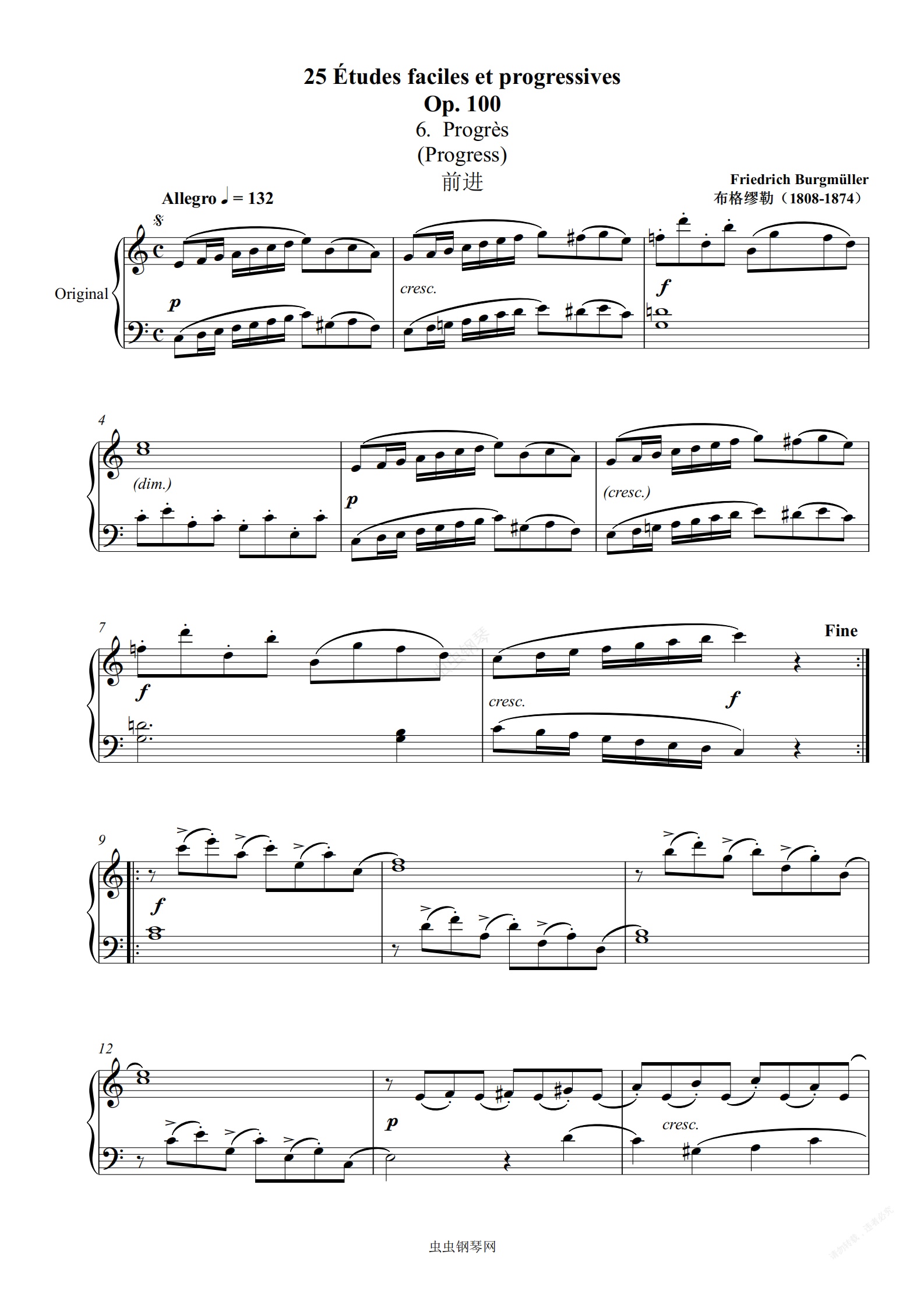 钢琴谱:【初学者】布格缪勒25首钢琴进阶练习曲 Op. 100 第六首 前进