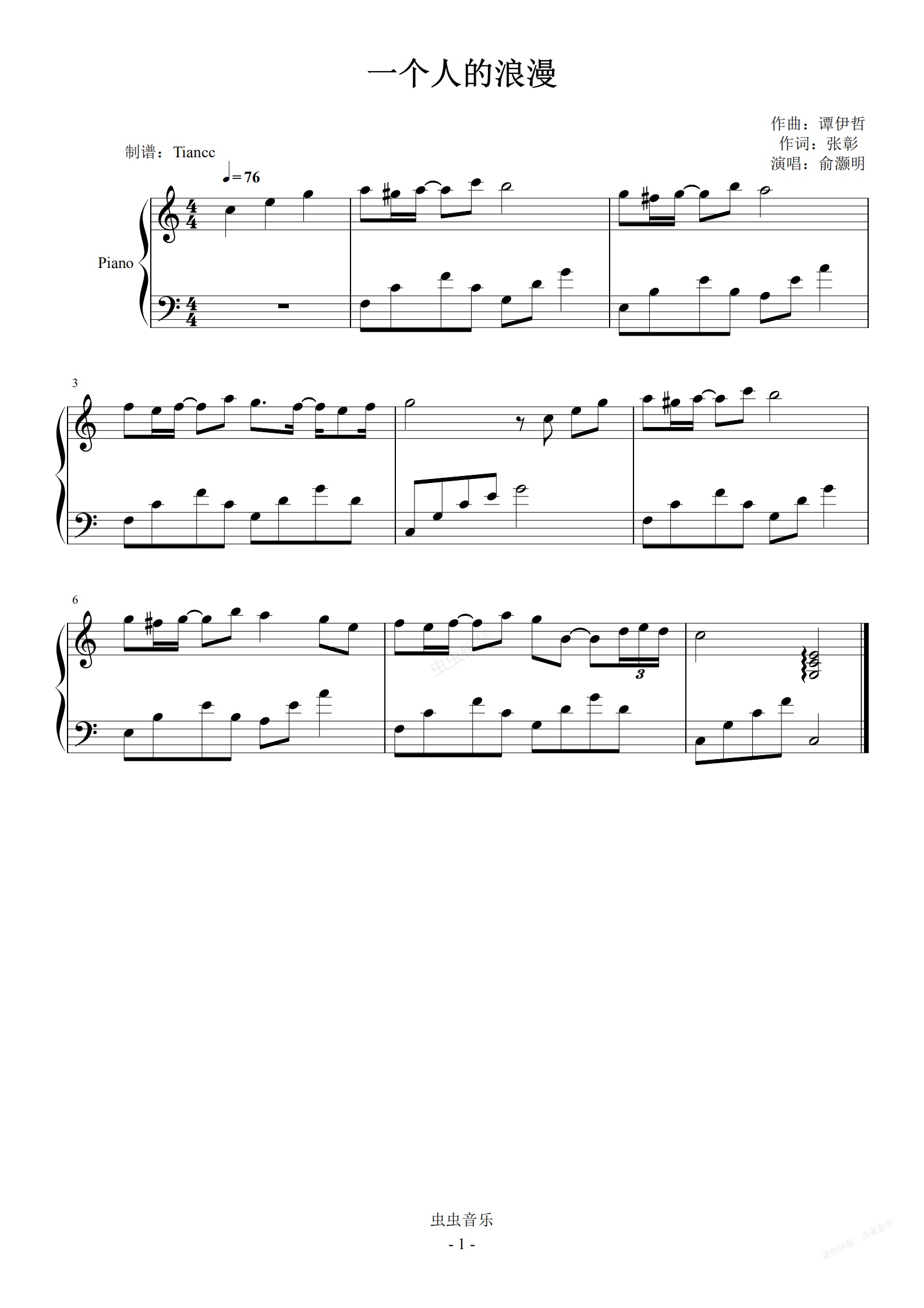 钢琴谱:《一个人的浪漫》前奏部分,前奏超好听,拜厄难度
