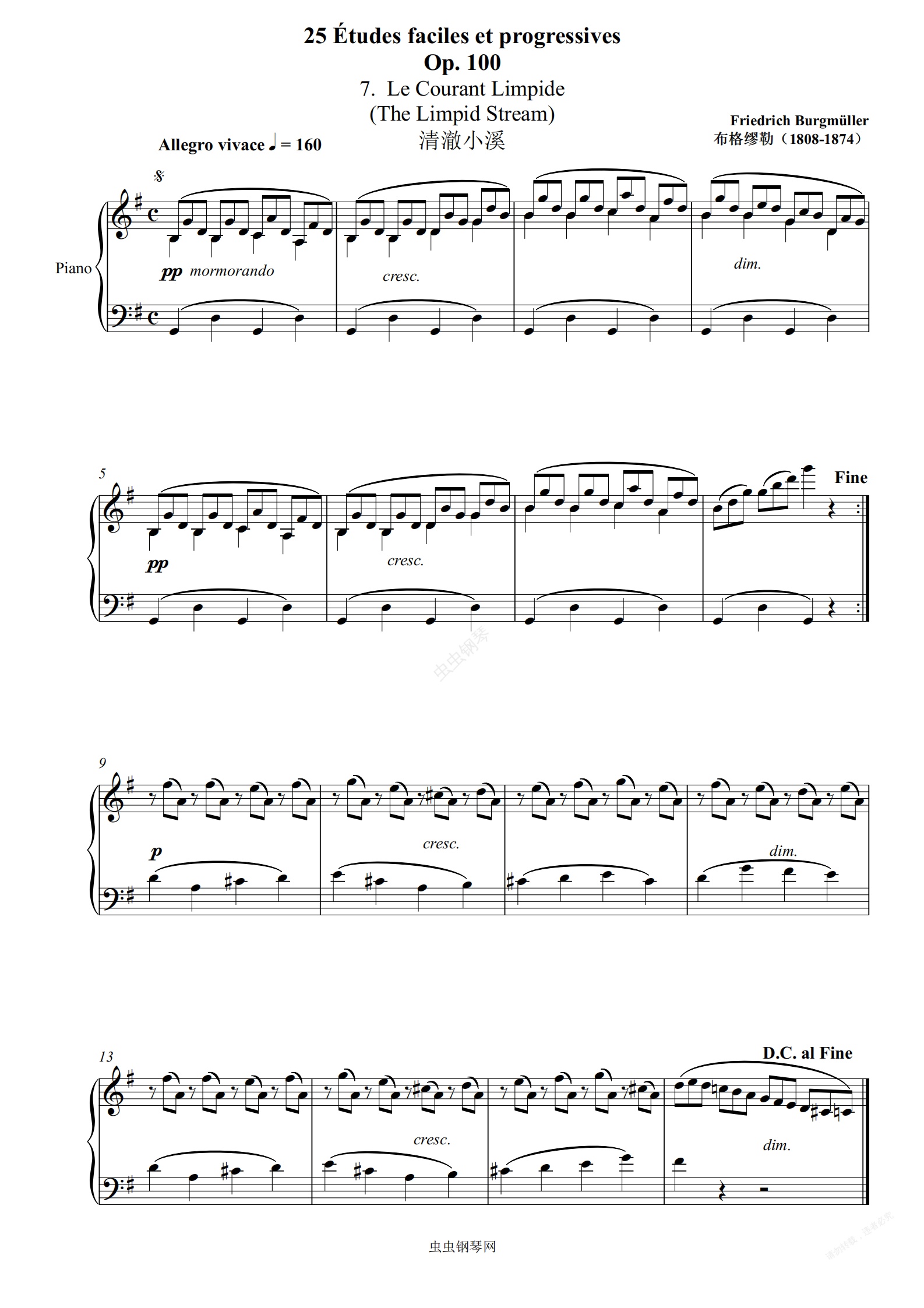 钢琴谱:【初学者】布格缪勒25首钢琴进阶练习曲 Op. 100 第七首 清澈小溪