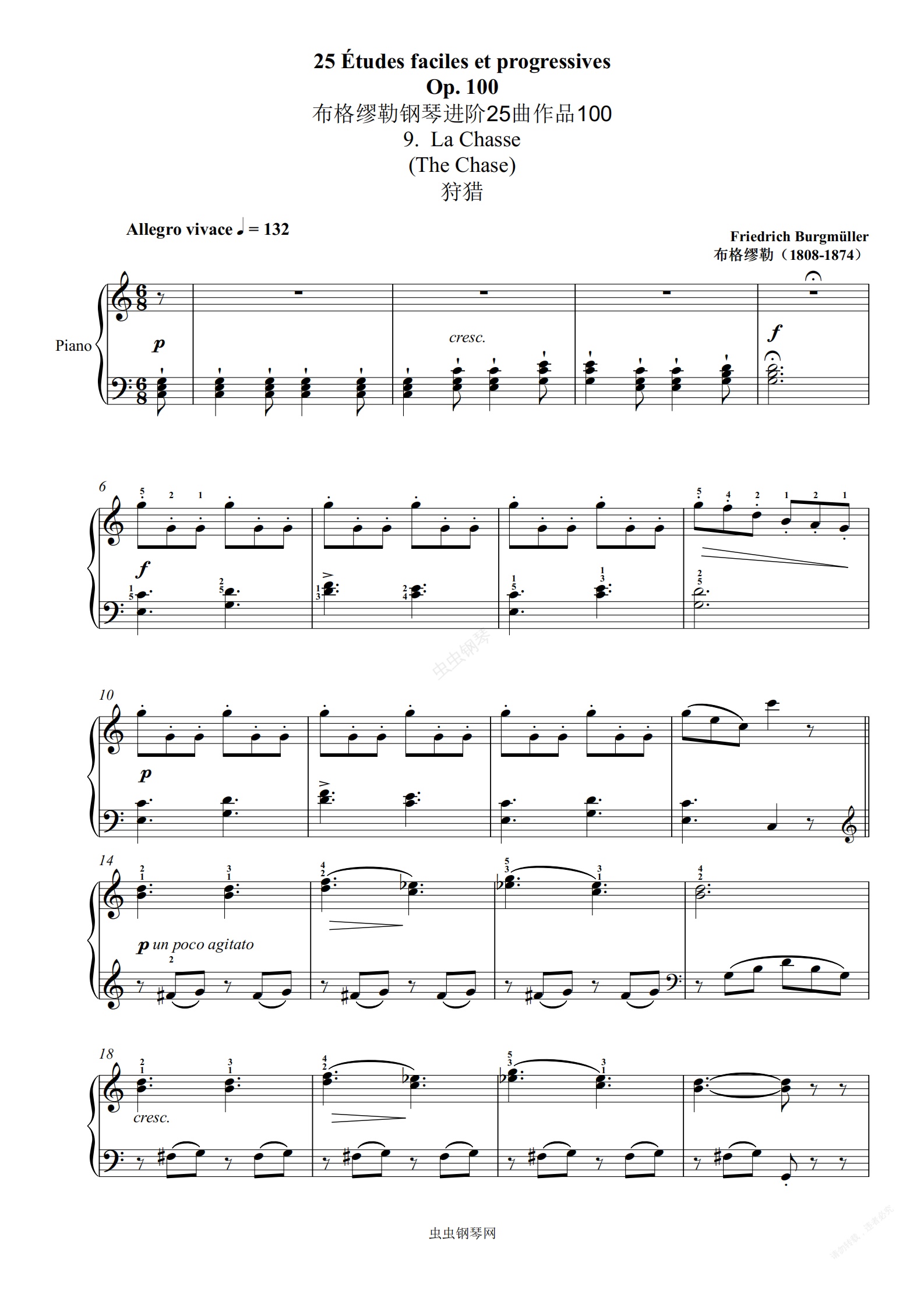 钢琴谱:【初学者】布格缪勒25首钢琴进阶练习曲 Op. 100 第九首 狩猎