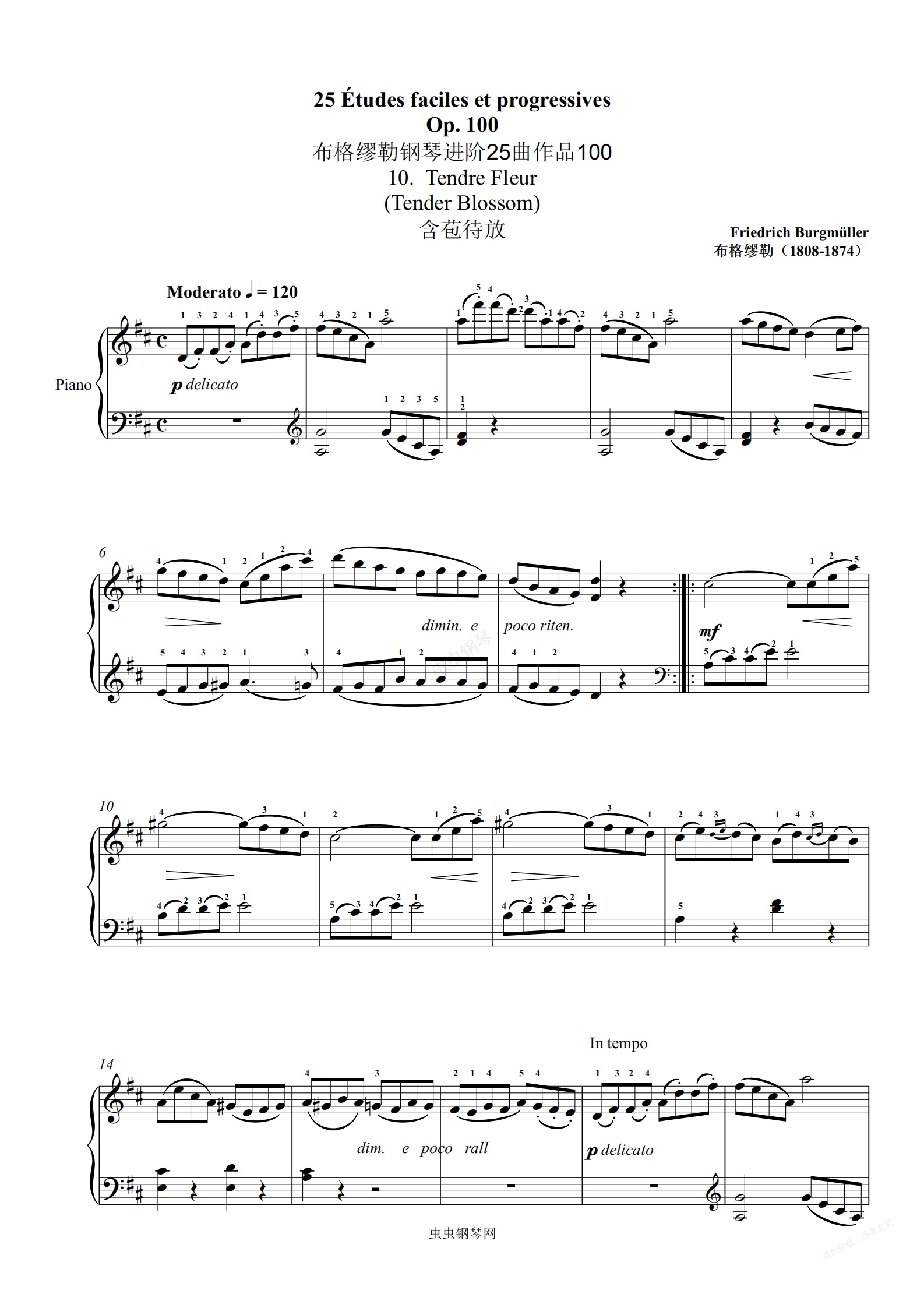 钢琴谱:【初学者】布格缪勒25首钢琴进阶练习曲 Op. 100 第十首 含苞待放