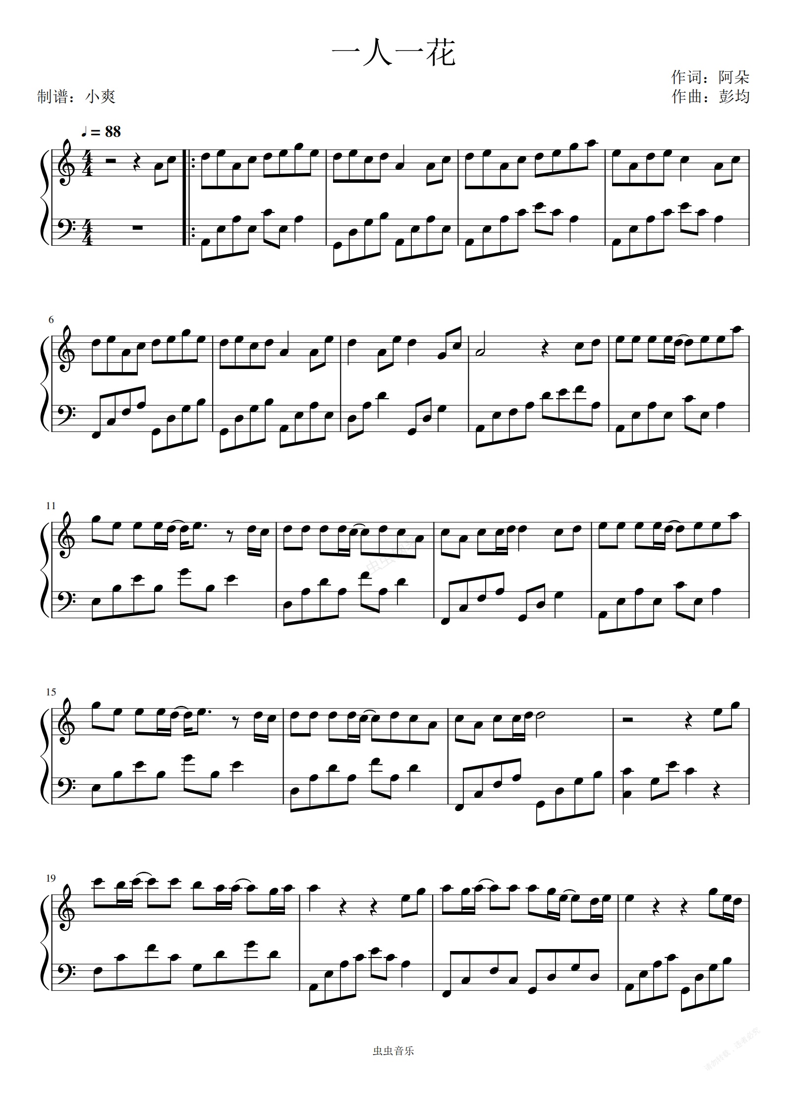 钢琴谱:一人一花