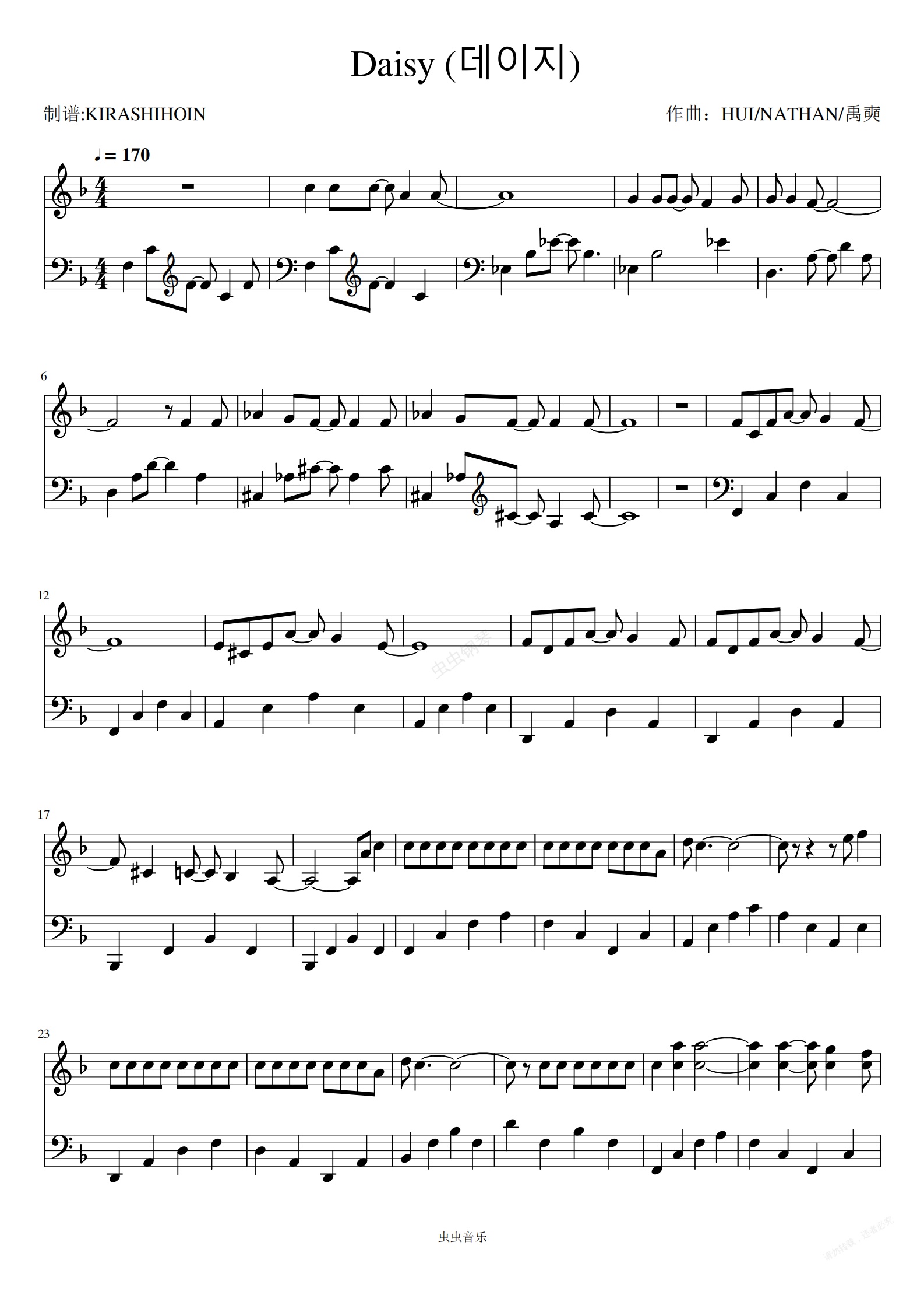 钢琴谱:데이지Daisy