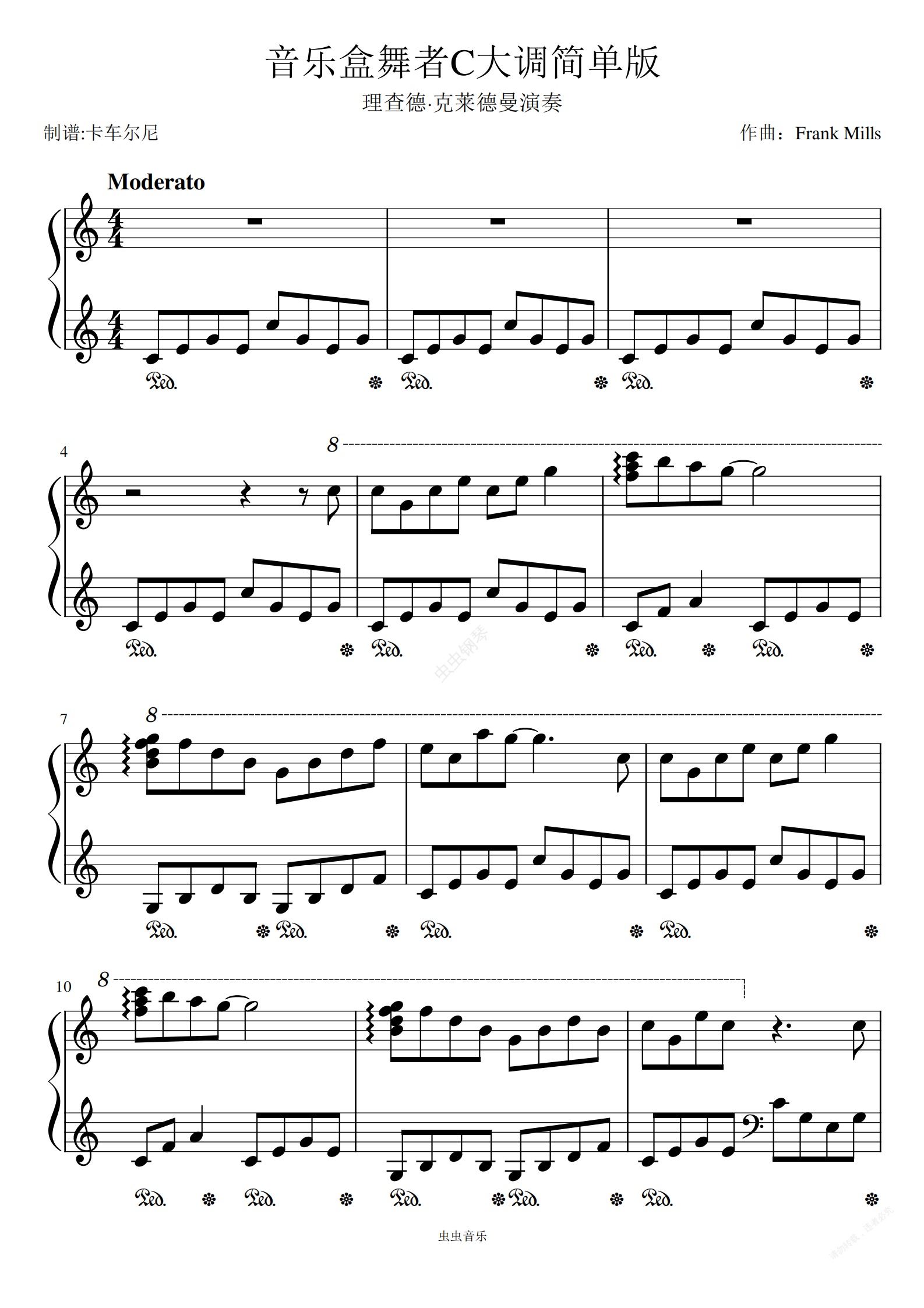 钢琴谱:音乐盒舞者 C大调简单好听版,适用儿童