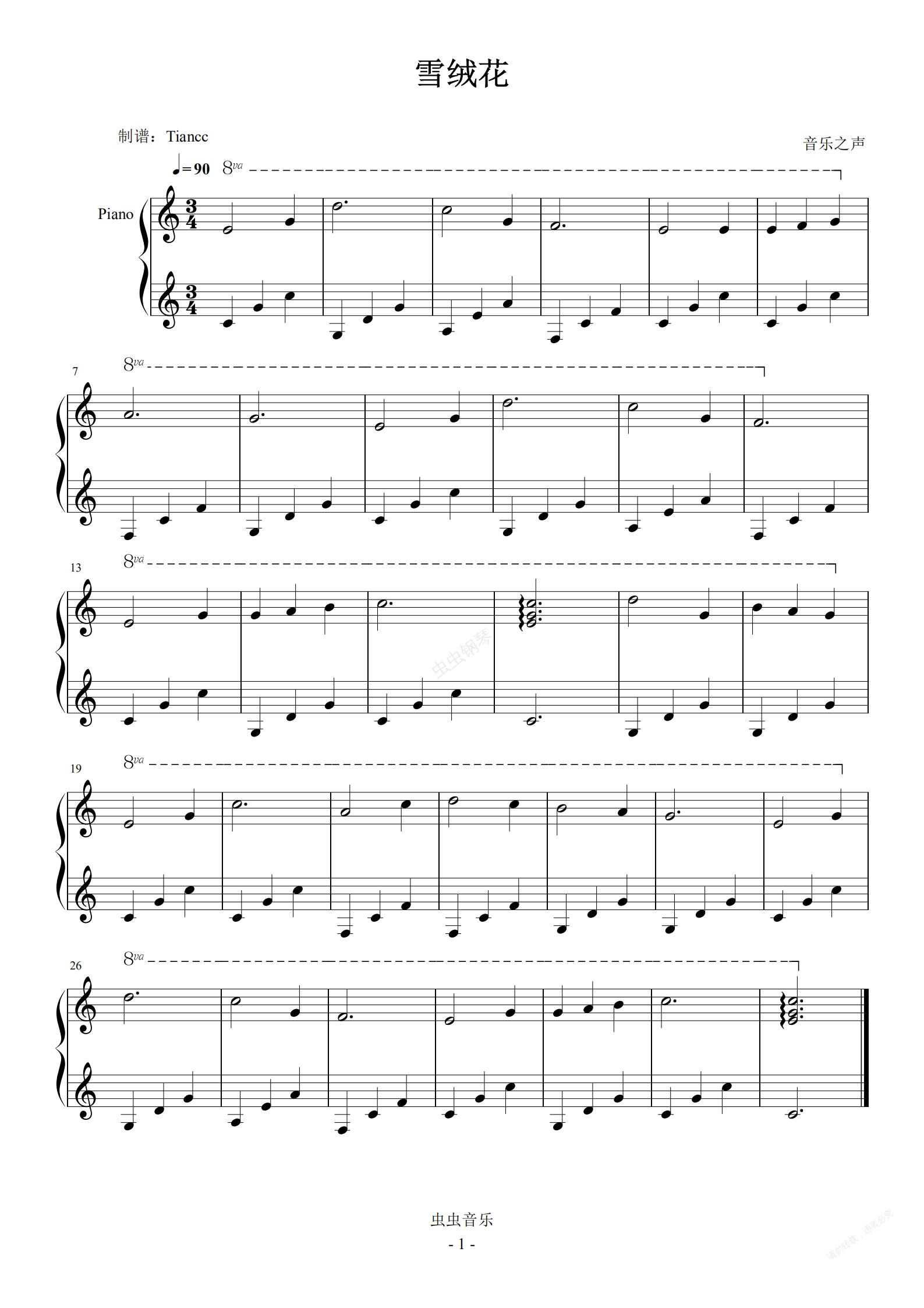 钢琴谱:《雪绒花》小汤3难度,轻柔好听