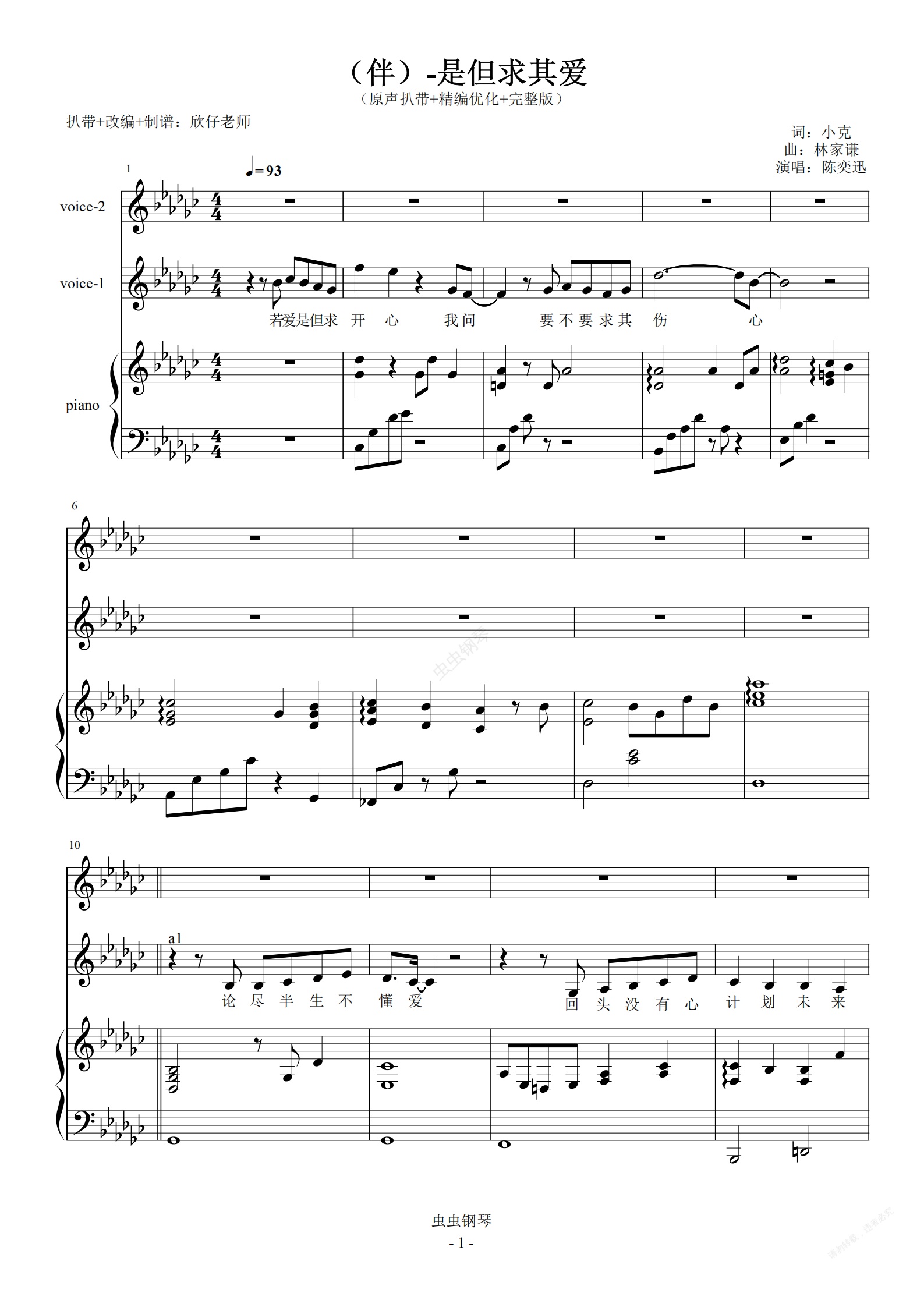 钢琴谱:(伴)-是但求其爱-升F调(原声扒带+精编优化+完整版)