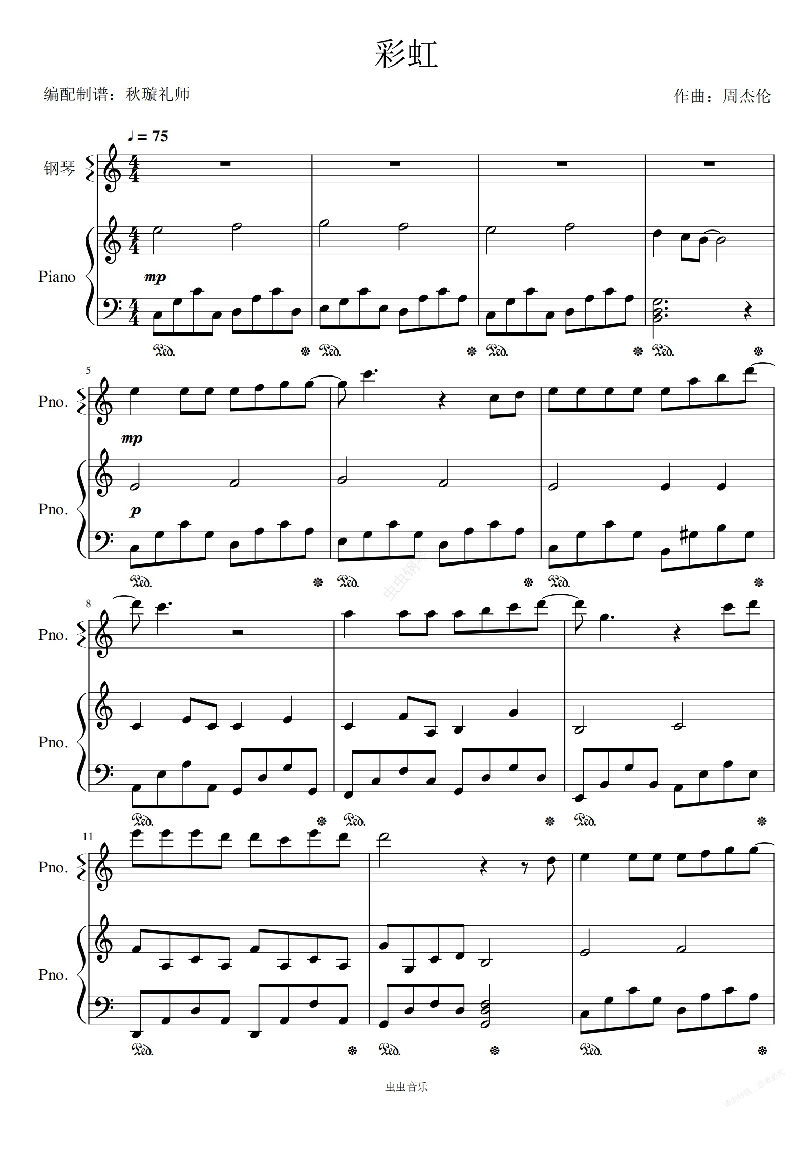 钢琴谱:彩虹-周杰伦[杰迷弹唱版]
