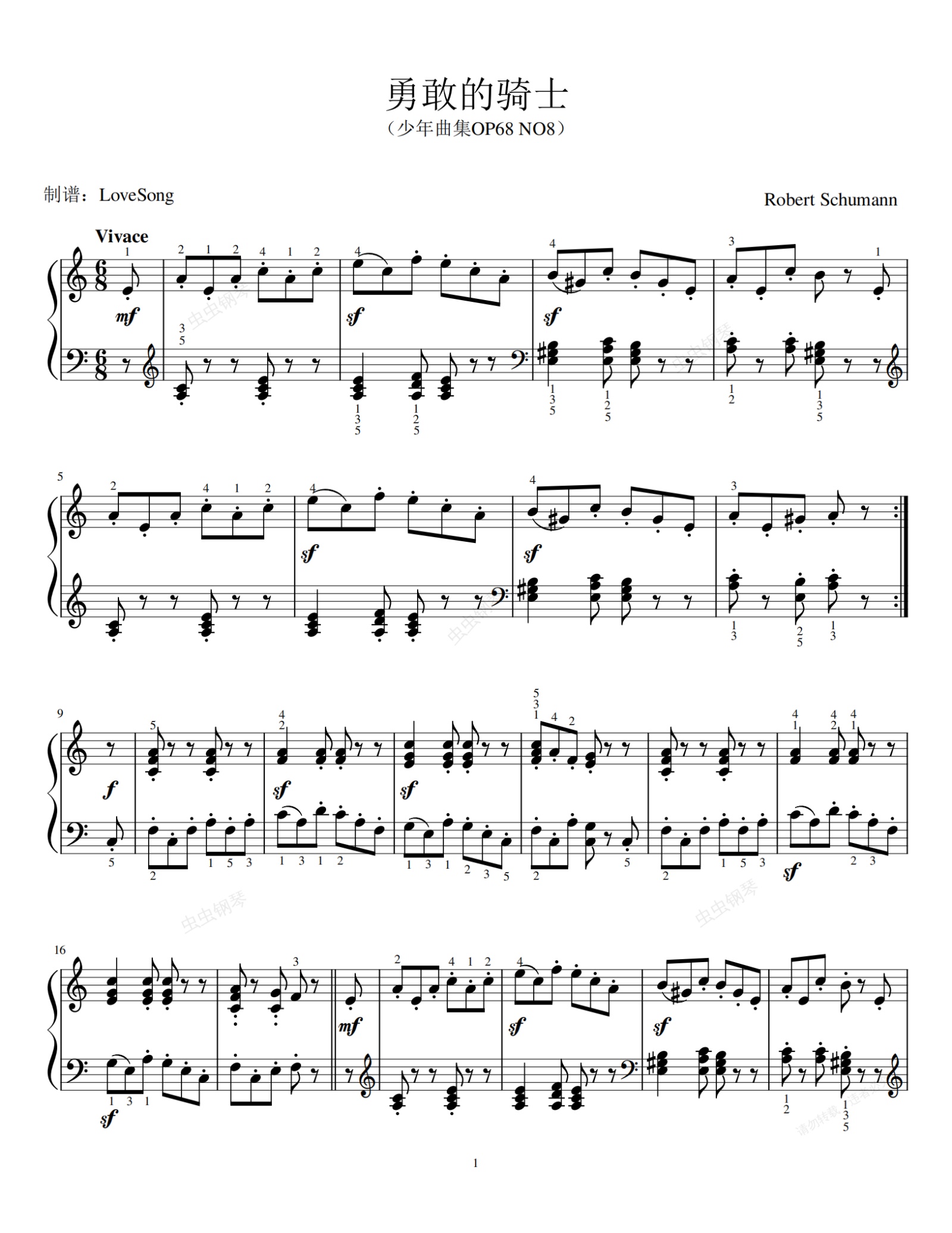 钢琴谱:舒曼 勇敢的骑士 狂热的骑士钢琴谱带指法原版高清