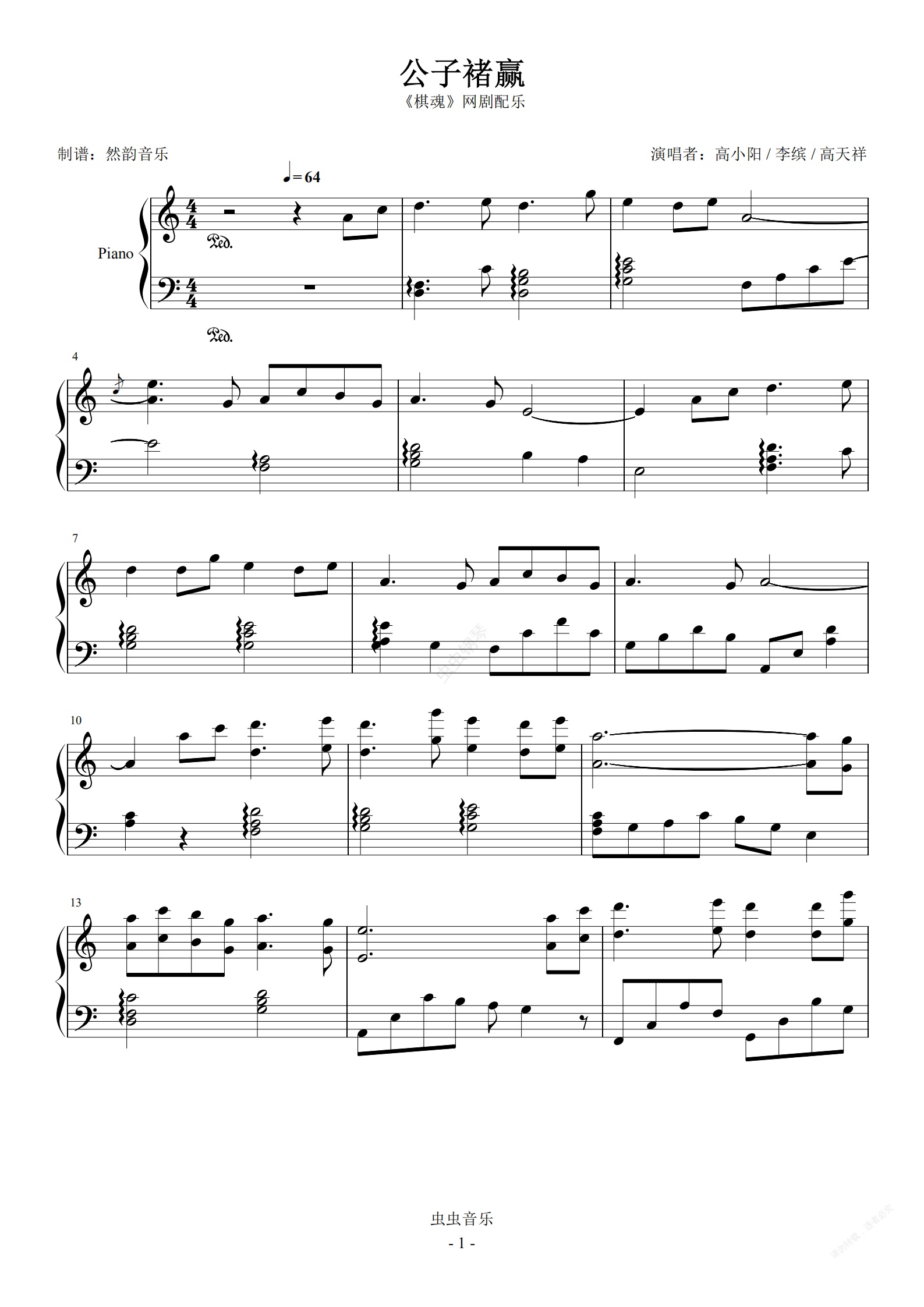 钢琴谱:公子褚嬴《棋魂》网剧插曲 完美独奏
