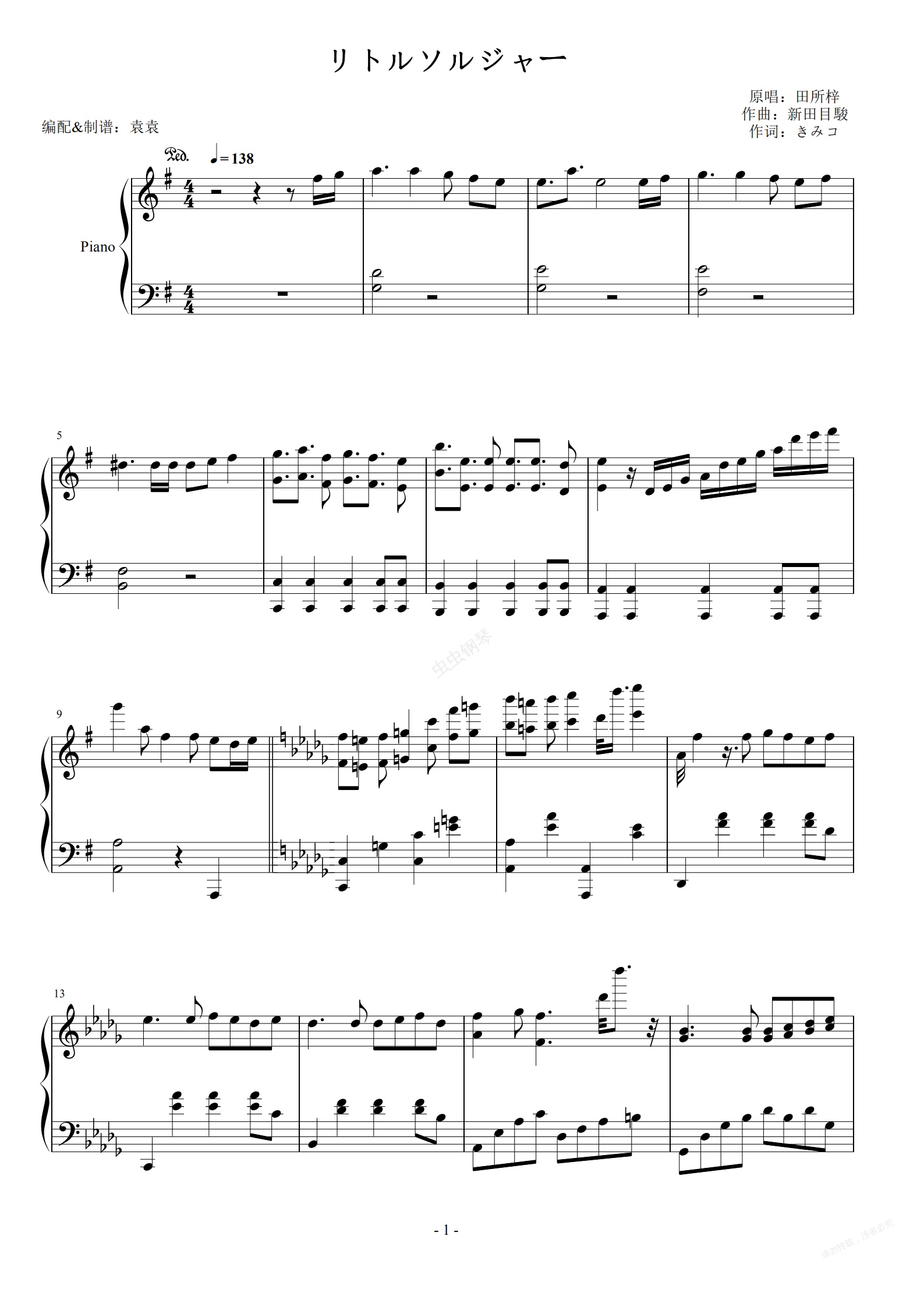 钢琴谱:リトルソルジャー(关于我转生变成史莱姆这档事ED)
