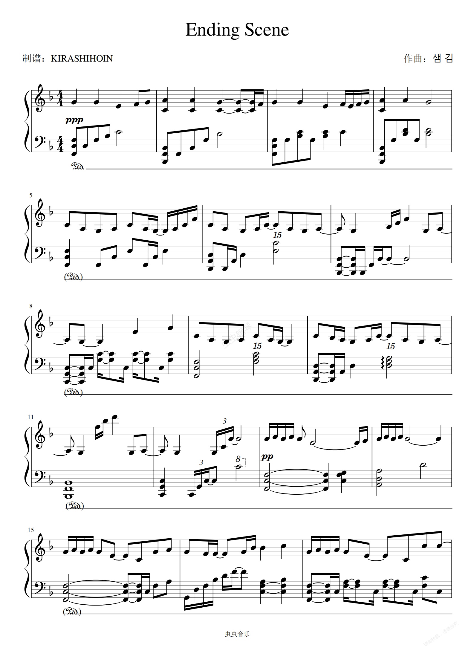 钢琴谱:Ending Scene/이런 엔딩 (这样的Ending)