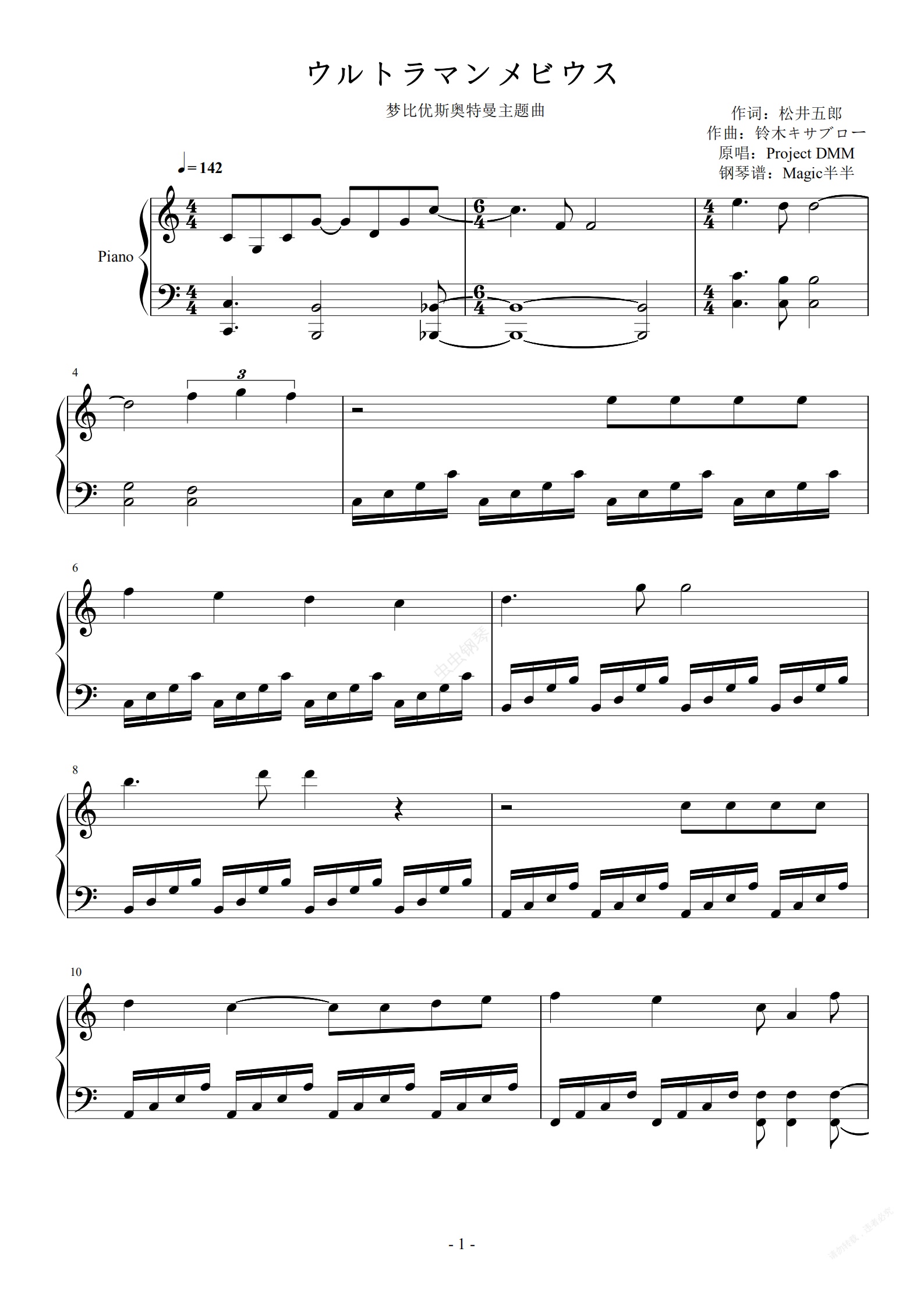 钢琴谱:梦比优斯奥特曼 C调简易版