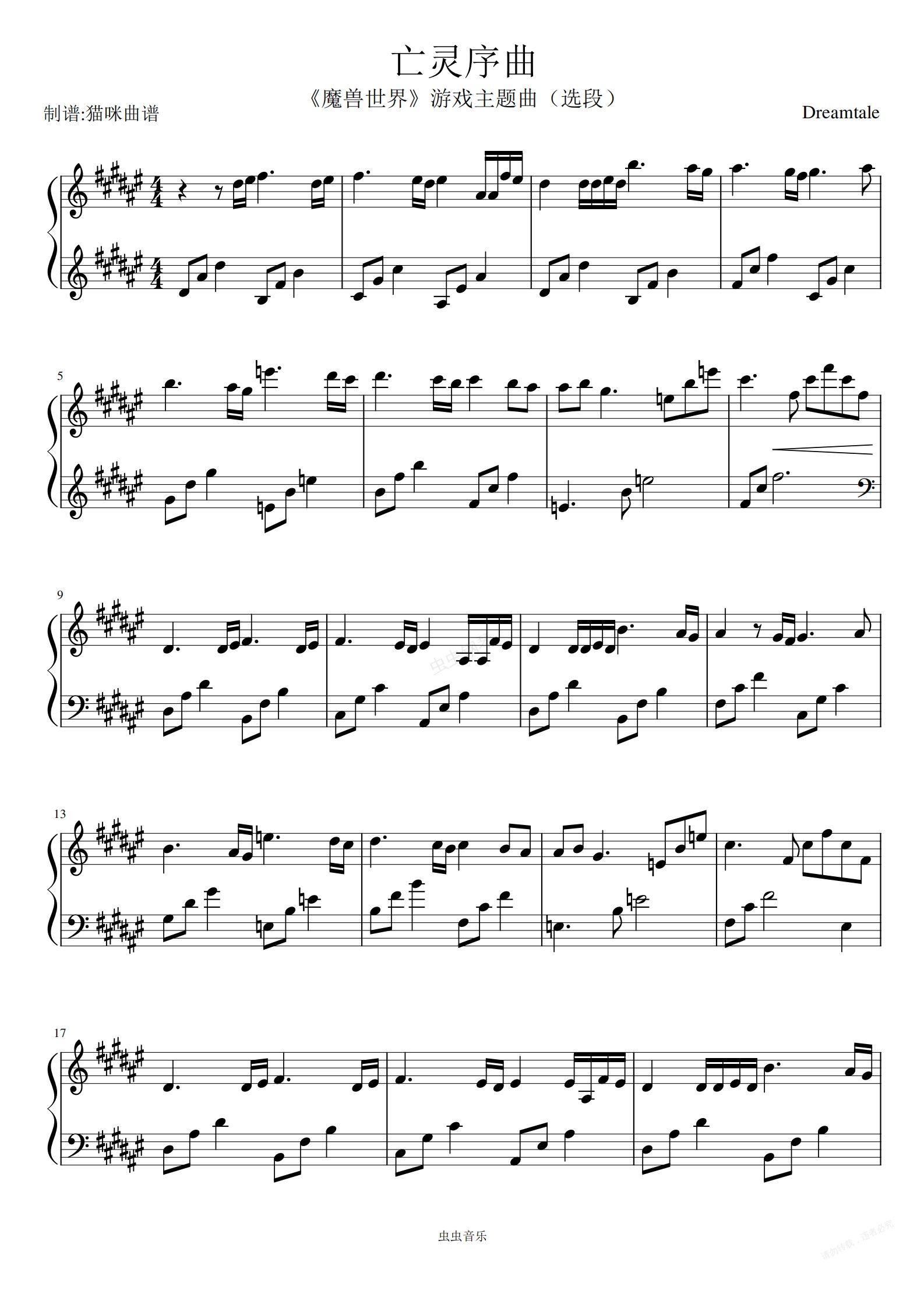 钢琴谱:亡灵序曲——《魔兽世界》游戏主题曲(选段)