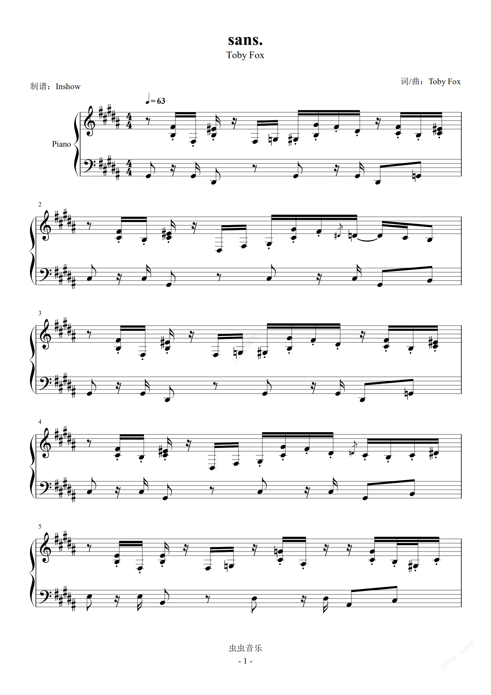 钢琴谱:Toby Fox - sans.【完整独奏】(#BGM)
