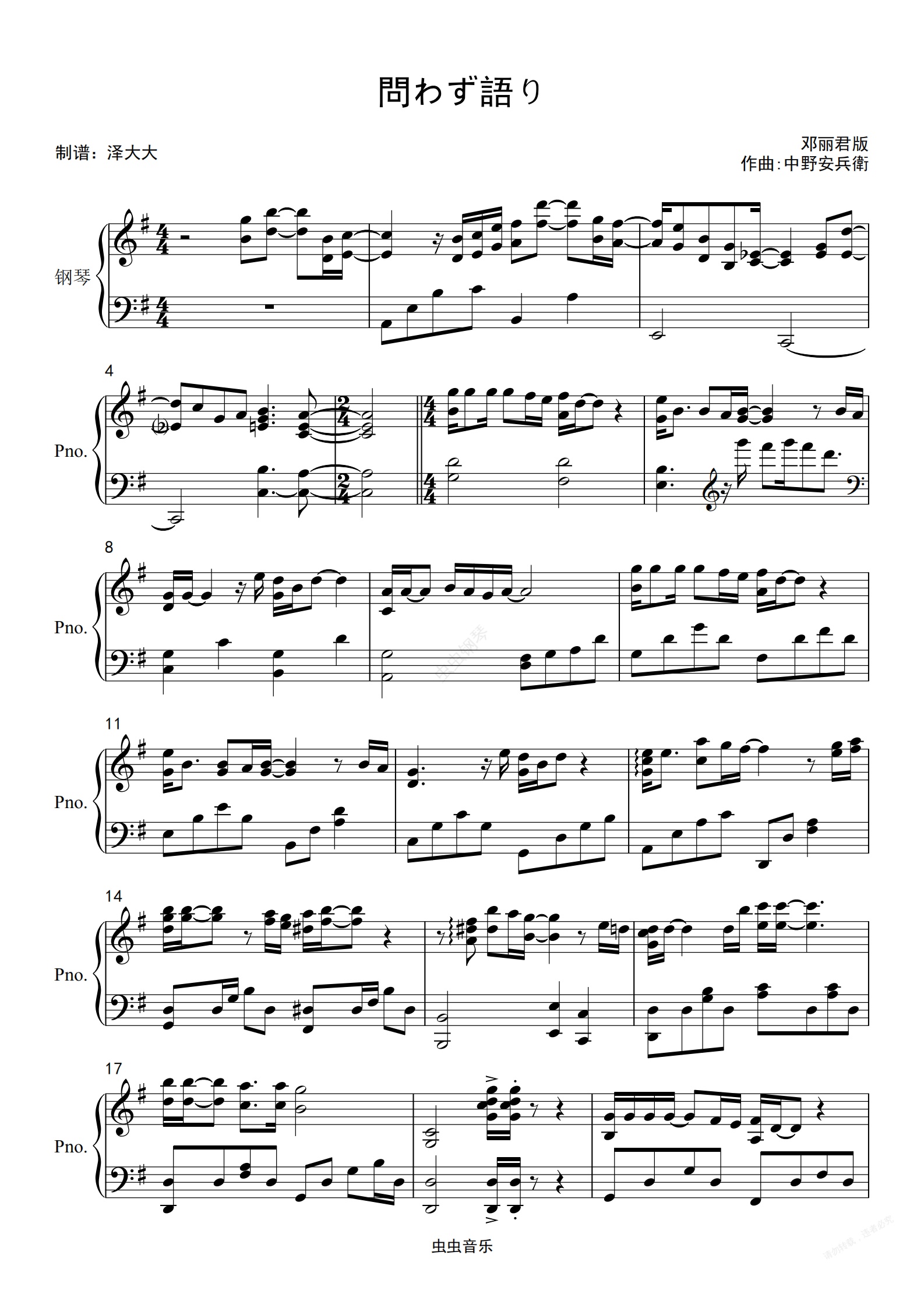 钢琴谱:問わず語り【邓丽君完美独奏版】